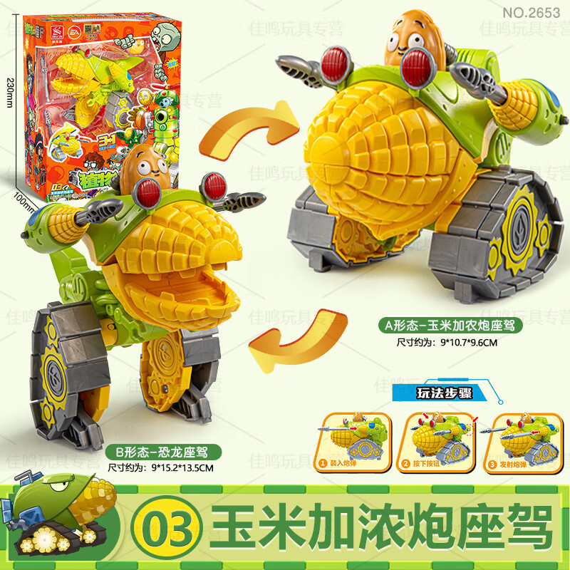 새로운 식물 대 좀비 원격 발사 전사 옥수수 대포 세트 변형 로봇 소년 선물스토어 가기