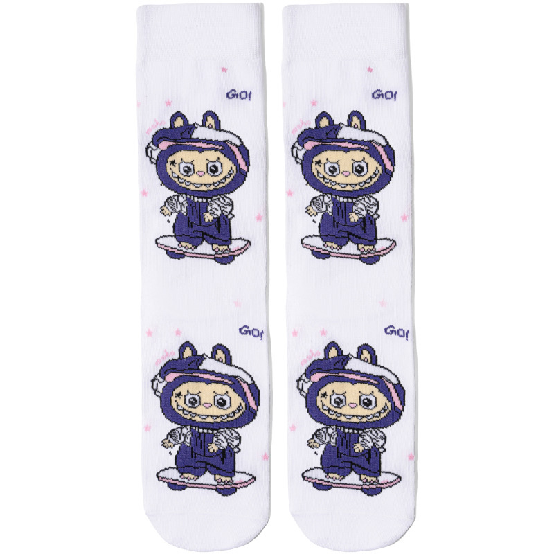 Labubu 양말 여성 한국어 버전 패션 다목적 종아리 양말 귀여운 일본 만화 복고풍 격자 무늬 만화 Labubu 양말