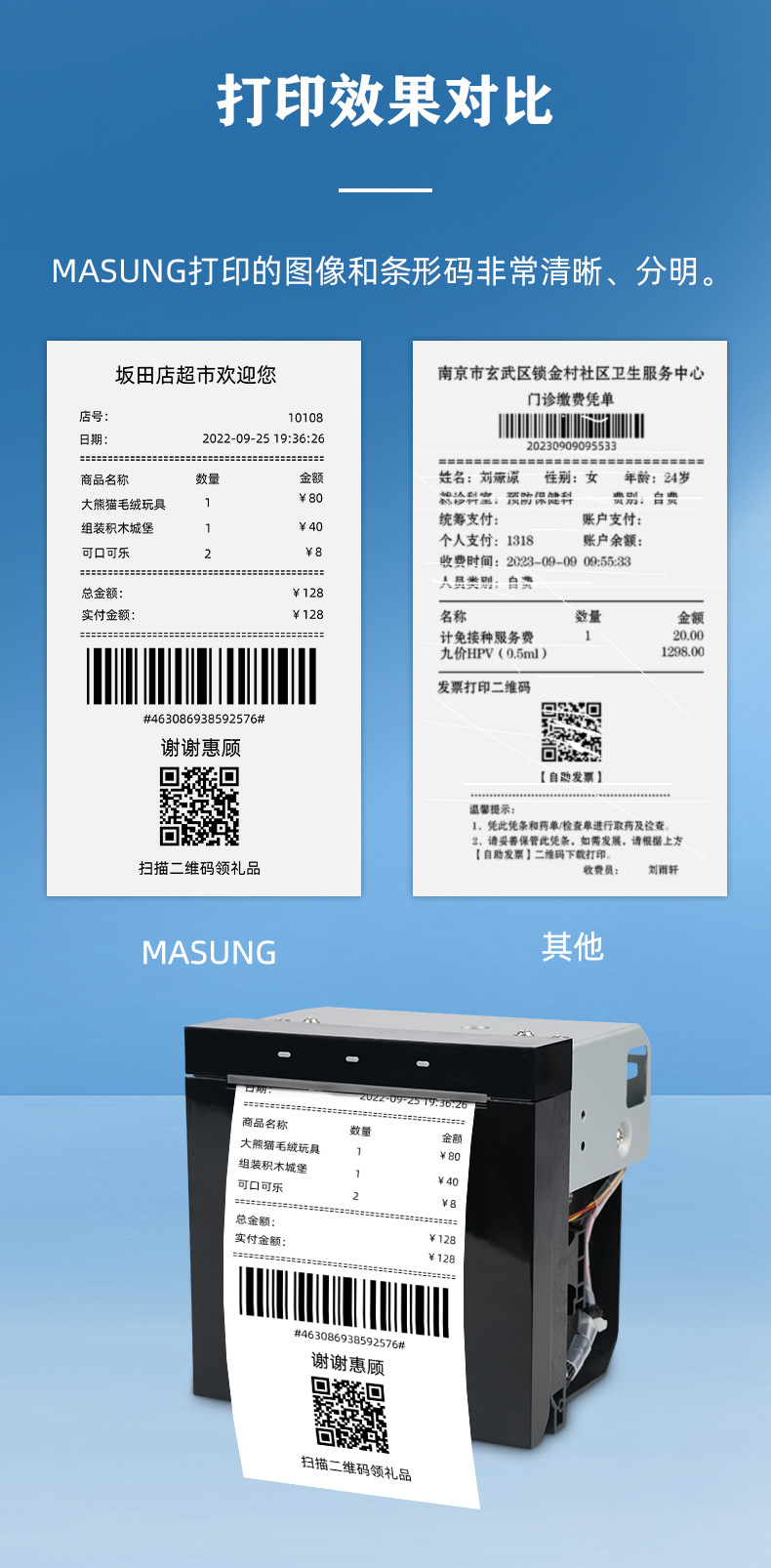 Meisong MS-FPT302_80mm 열 영수증 프린터 내장 패널 영수증 프린터스토어 가기