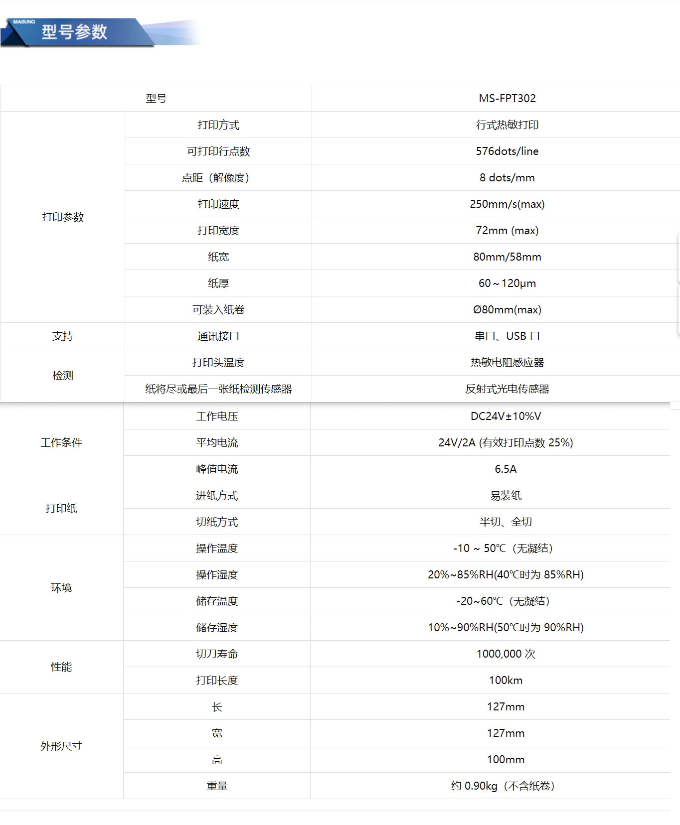 Meisong MS-FPT302_80mm 열 영수증 프린터 내장 패널 영수증 프린터