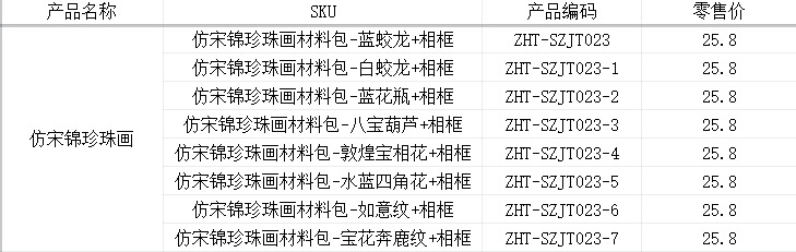 • 모조 송비단 진주 그림 재료 패키지 - 팔보박(가위 포함) + 액자