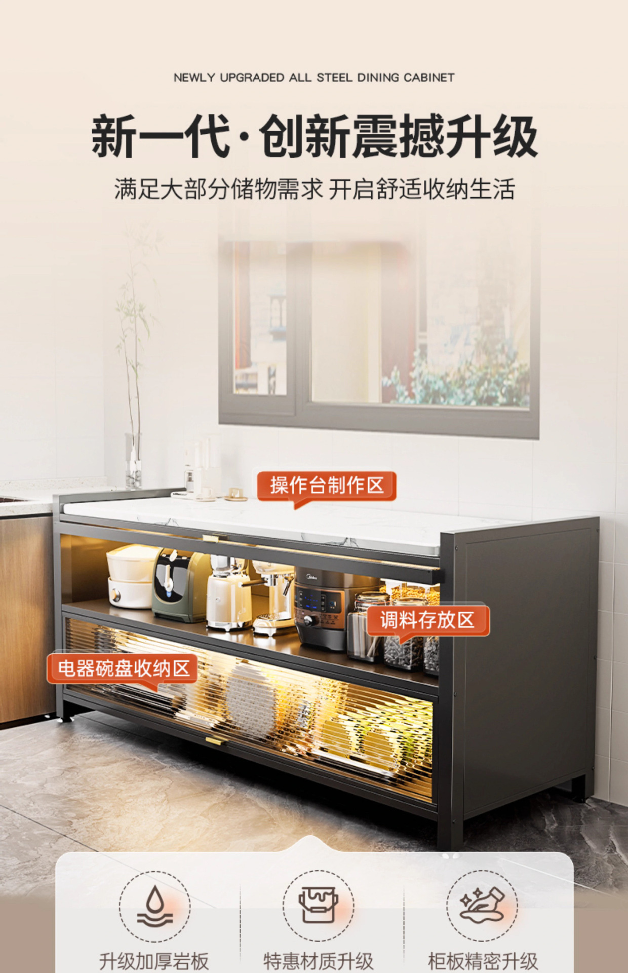 주방 수납 선반, 바닥에서 천장까지 다층 슬레이트 수납 캐비닛, 다기능 전자 레인지, 야채 절단 가정용 수납 캐비닛