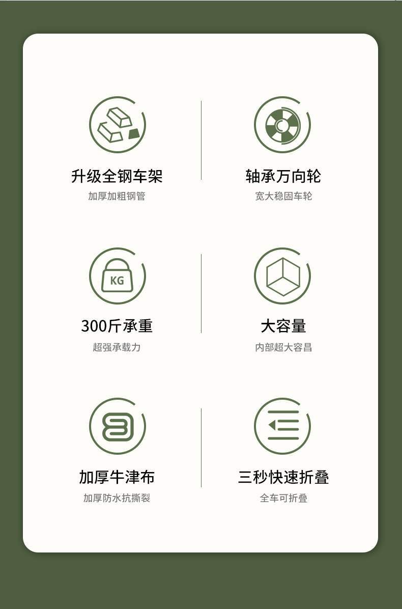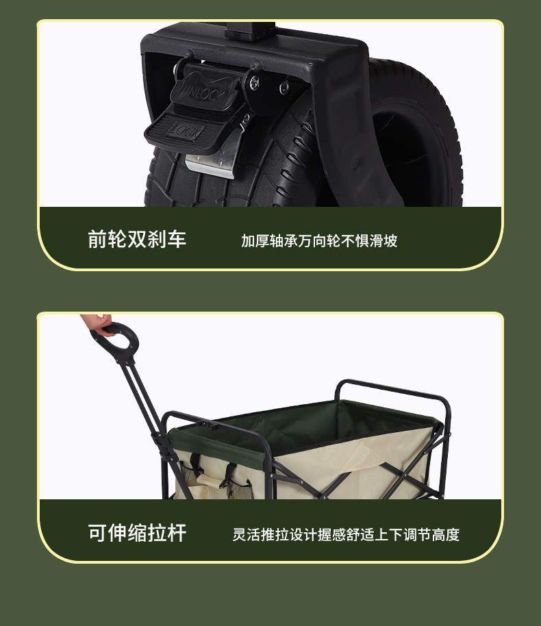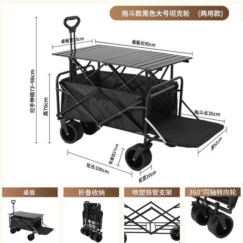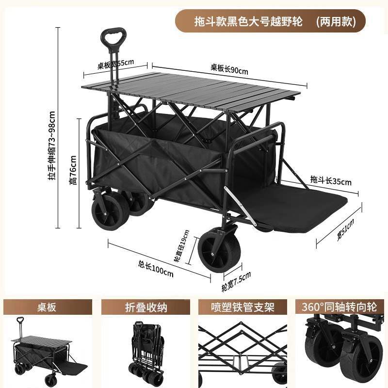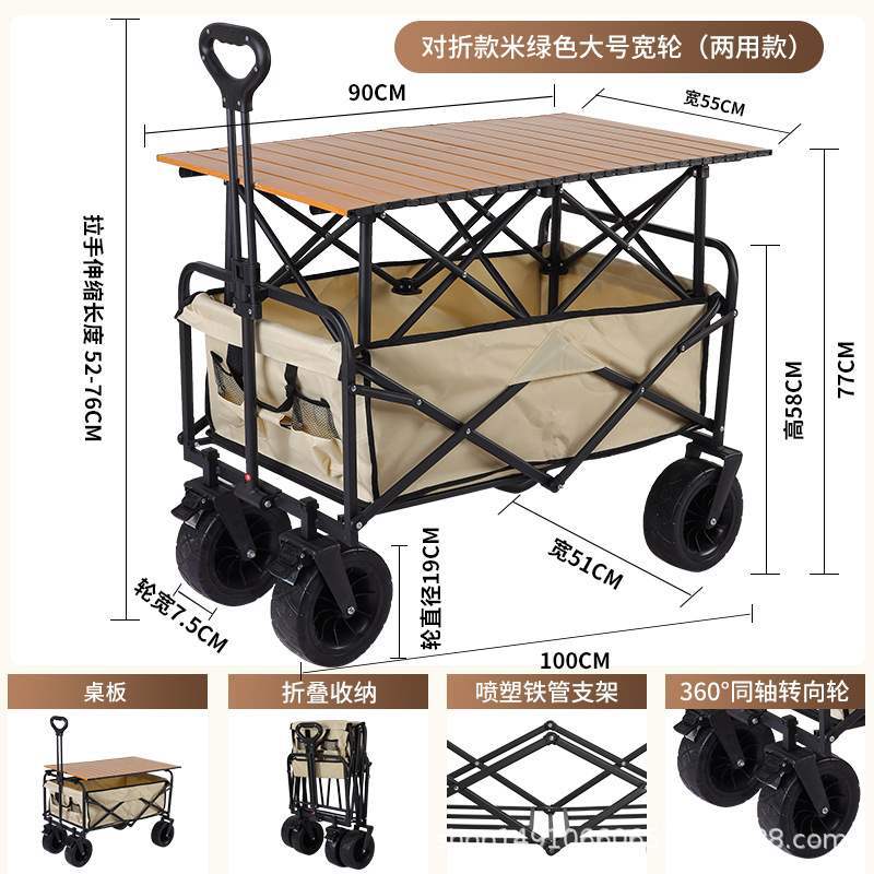 • 리어 플립 대형 8inch 와이드 휠 카키/더블 브레이크 + 높고 길어진 접이식 테이블