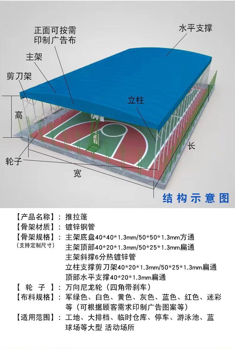 광동 야외 설치 전기 슬라이딩 천막 테니스 코트 비와 바람 천막 대형 창고 방수 천막 개폐식 천막