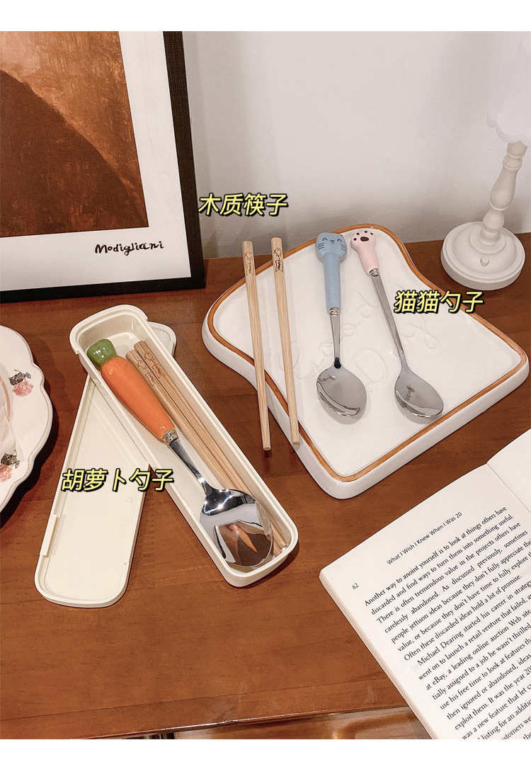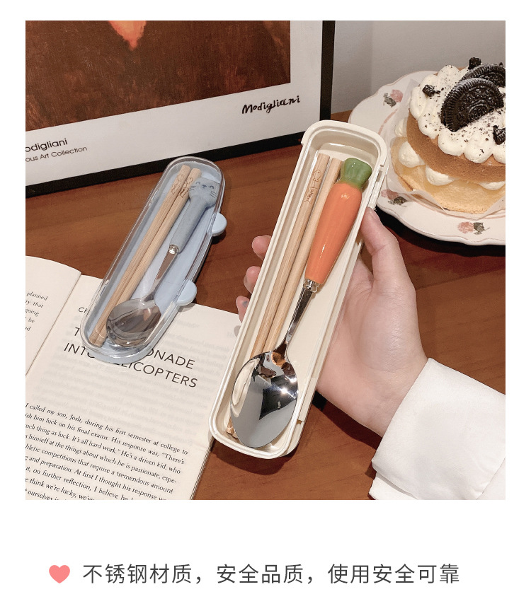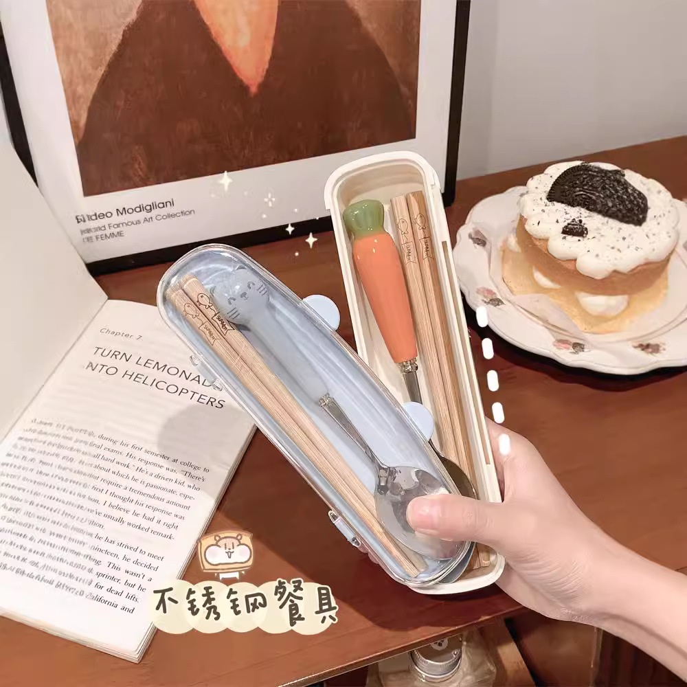 휴대용 1인용 수납함, 아기 식사용 젓가락, 수저세트, 초등학생 어린이 식기, 학교스토어 가기