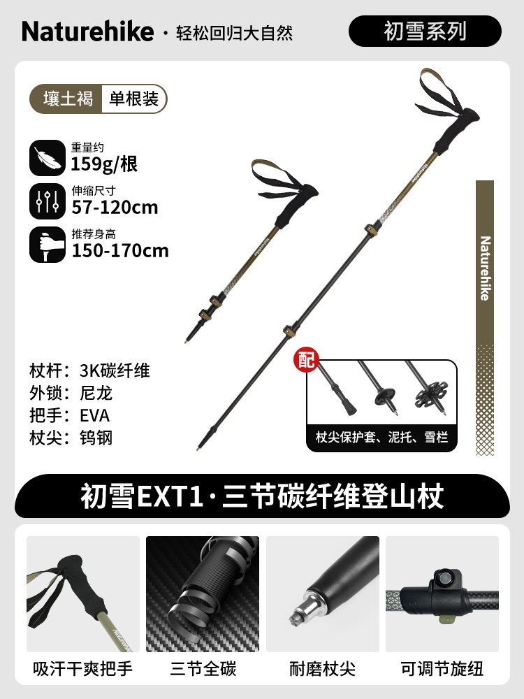 [초설 EXT1] 노크 탄소 섬유 트레킹 스틱 탄소 초경량 텔레스코픽 남성 및 여성 전문 야외 하이킹 스틱스토어 가기