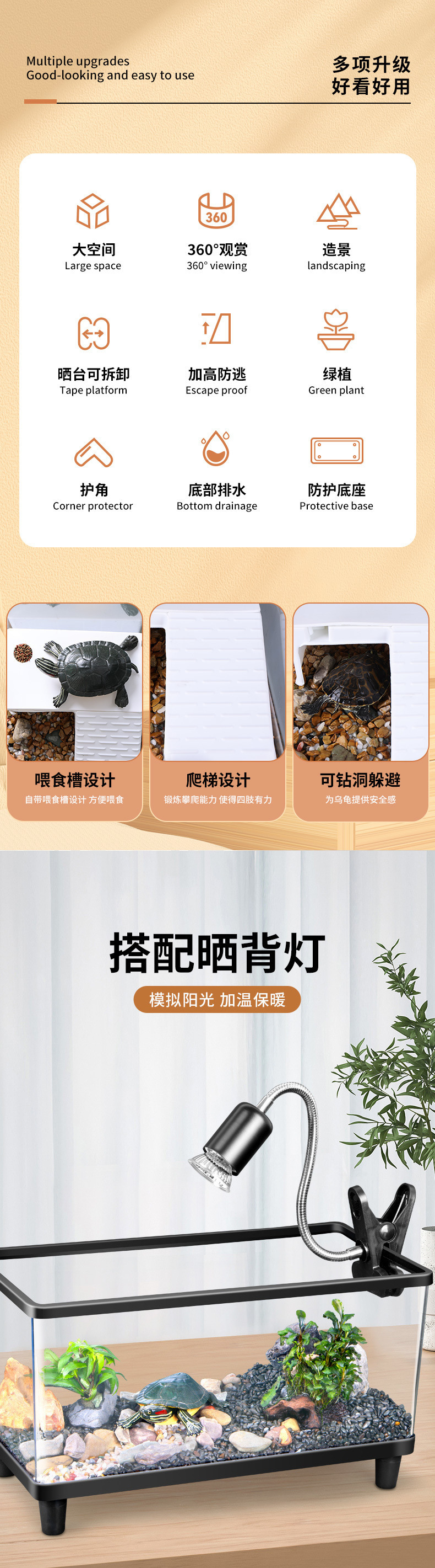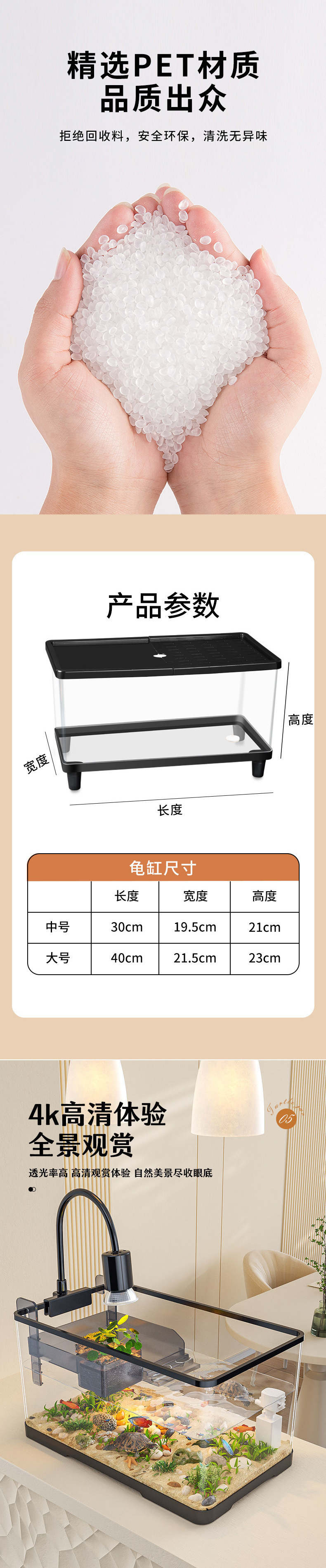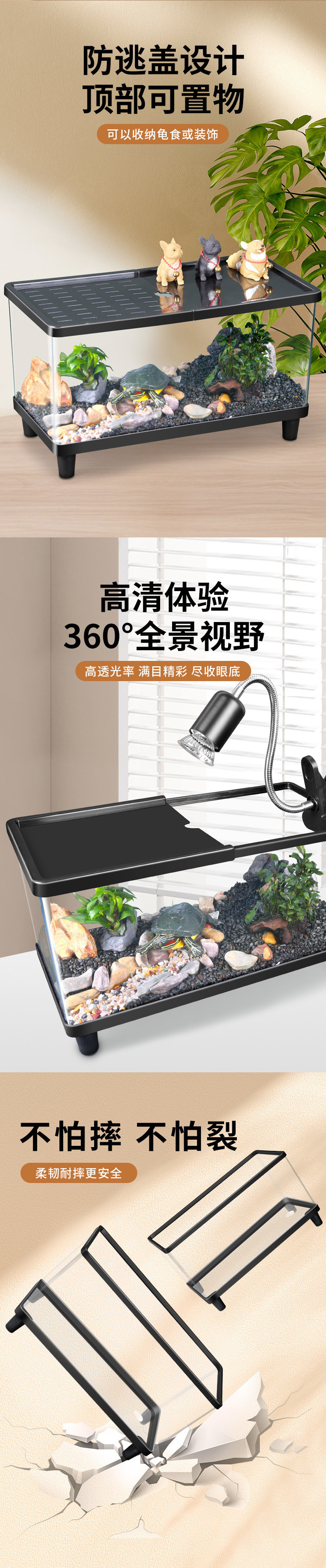 태양광 플랫폼이 있는 생태 탱크 물고기 거북이 유리 거북이, 가정용 애완용 브라질 거북이, 소형 빌라 사육 상자, 수조 조경, 새로운스토어 가기