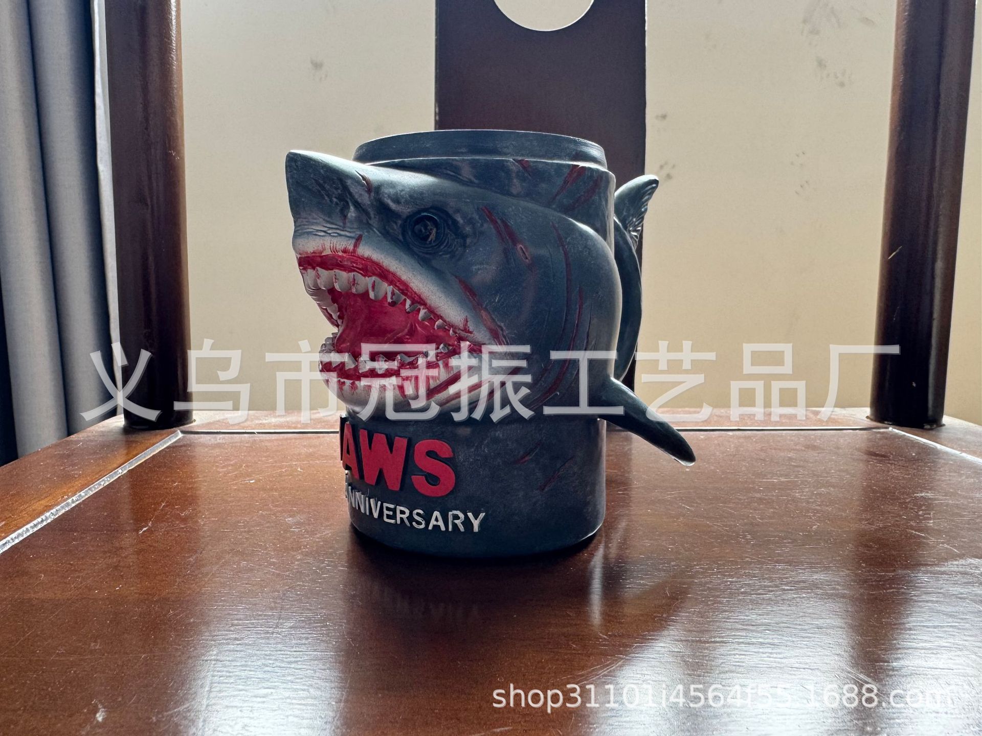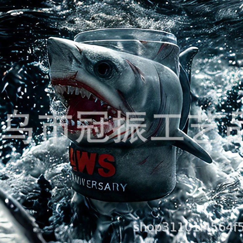 국경 간 새로운 큰 백상어 컵 장식 디자인 Jaws 50주년 기념 3D 머그컵스토어 가기