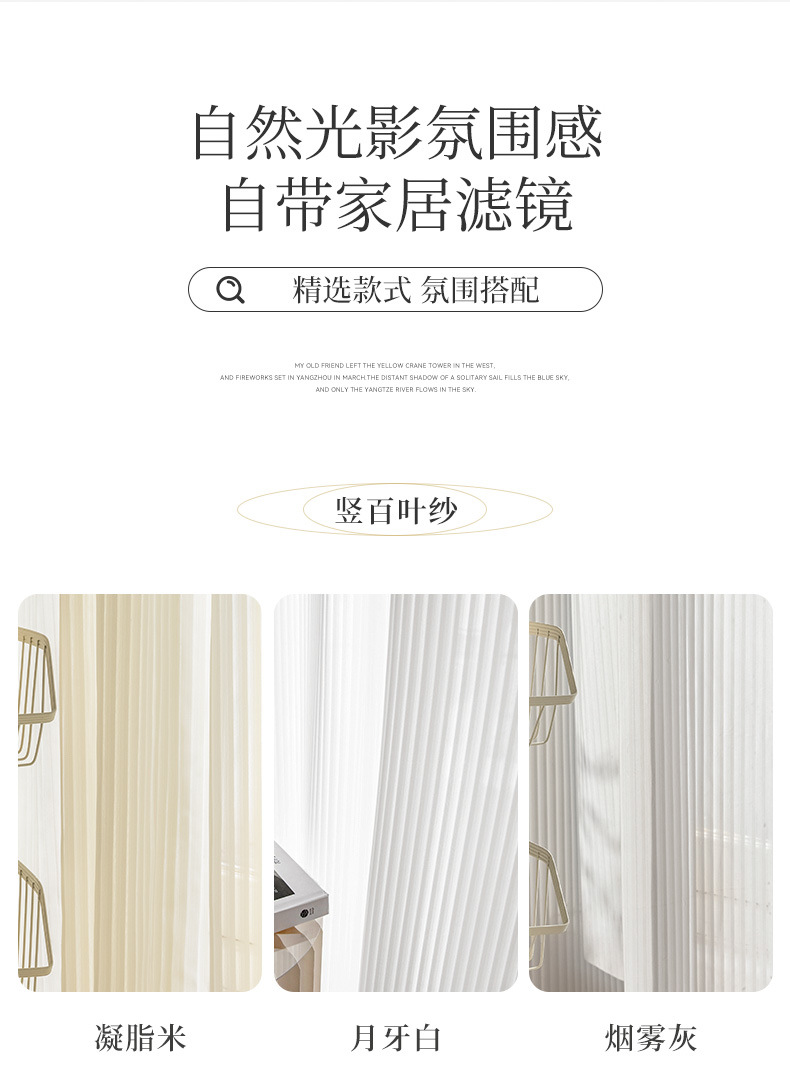 빛을 투과하지 않고 불투명한 크림색 수직 블라인드, 환상적인 커튼, 흰색 거즈 커튼, 발코니 자외선 차단제, 플로팅 창, 흰색 창문 스크린스토어 가기