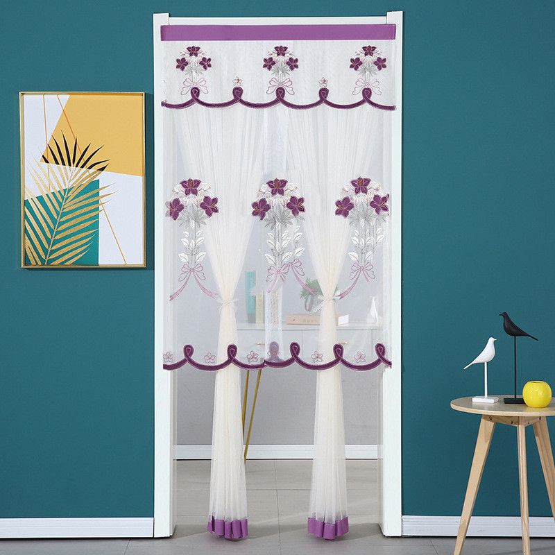 도어 커튼 레이스 거즈 커튼 여름 침실 주방 차단 칸막이 커튼 모기 방지 도어 커튼 홈 패브릭 거즈 도어 펀치 없음