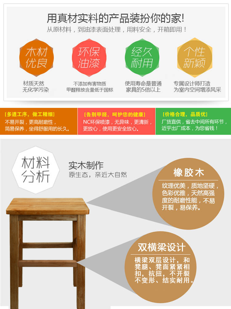 단단한 나무 작은 의자 가정용 성인 낮은 의자 단단한 나무 작은 사각형 의자 나무 벤치 의자 작은 나무