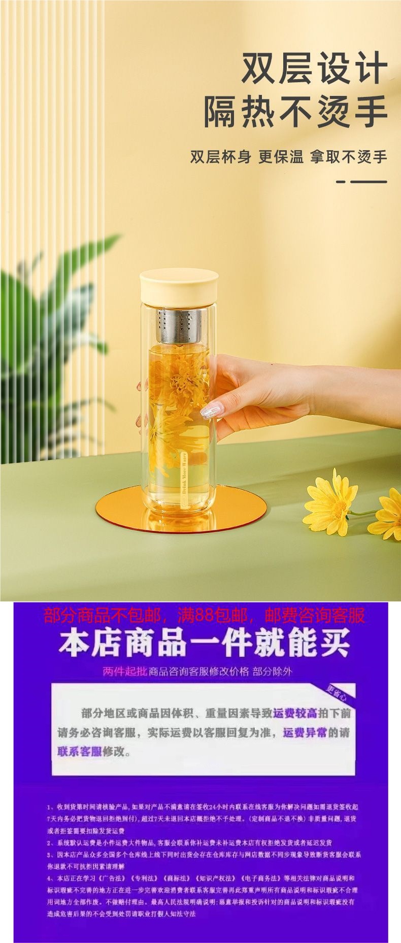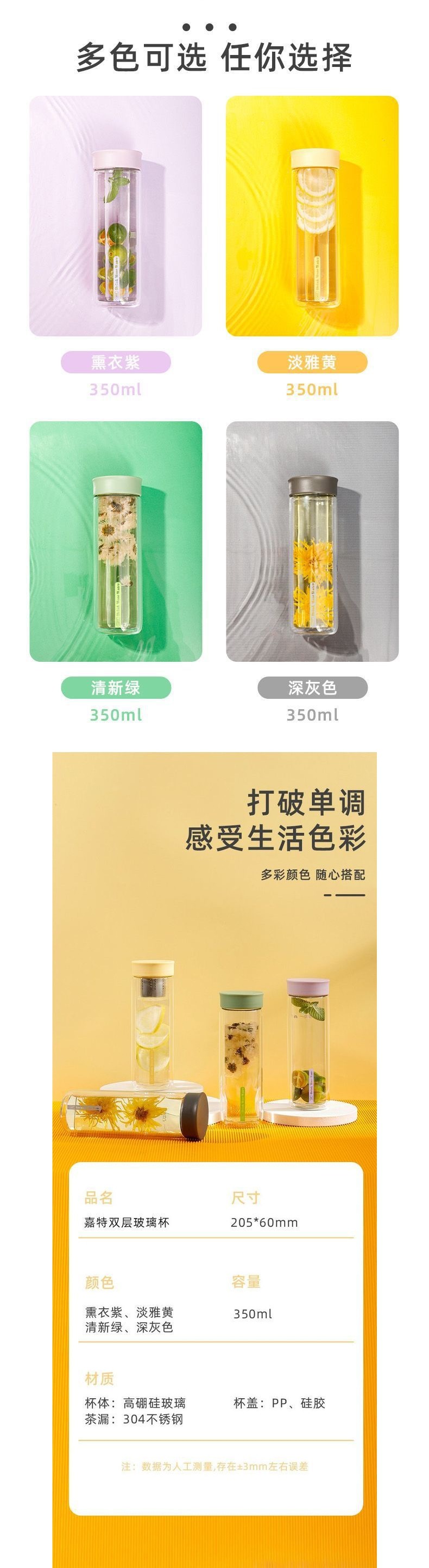 Jiate 차 휴대용 분리 차 컵 유리 컵 이중 유리 절연 물 컵 잘 생긴 소녀를위한