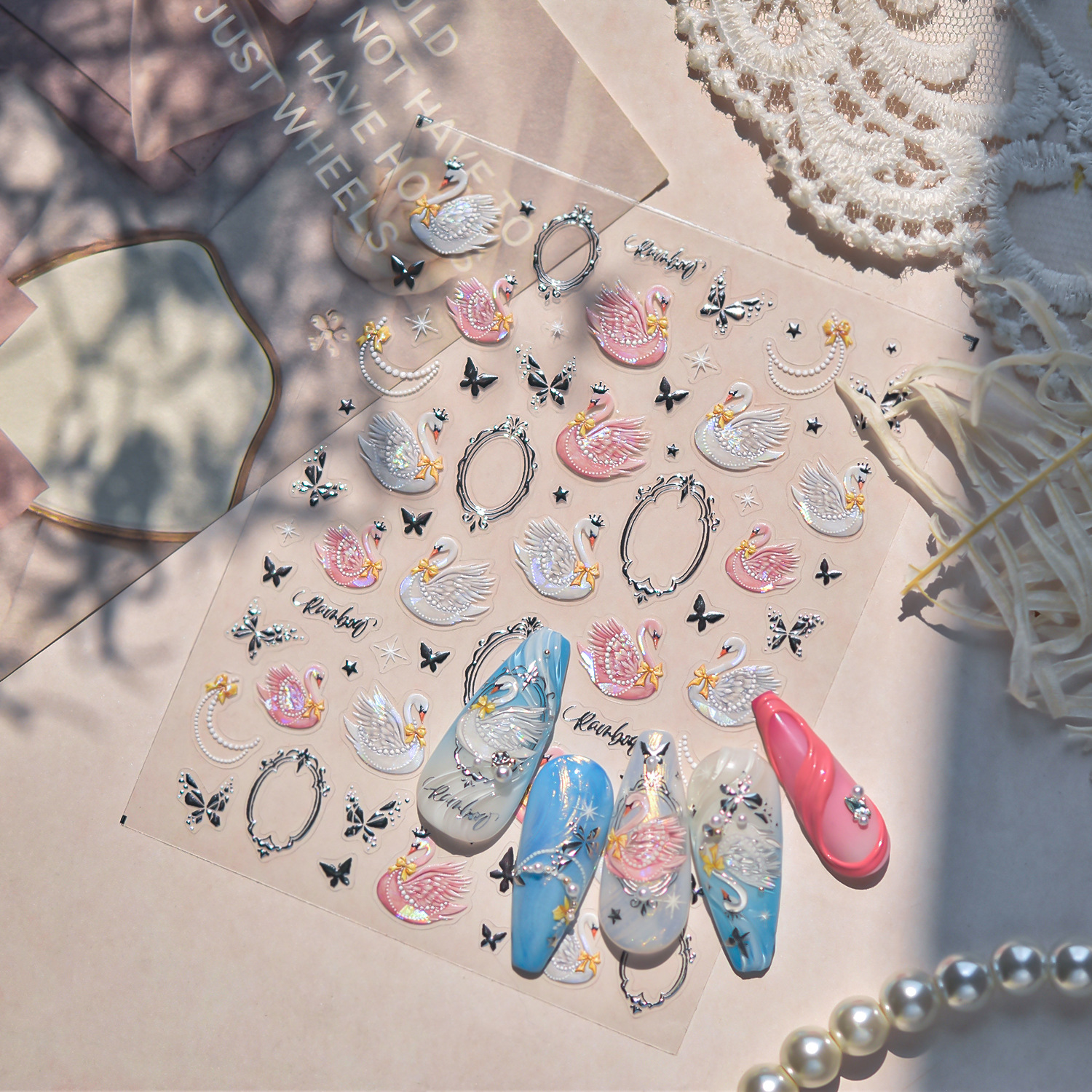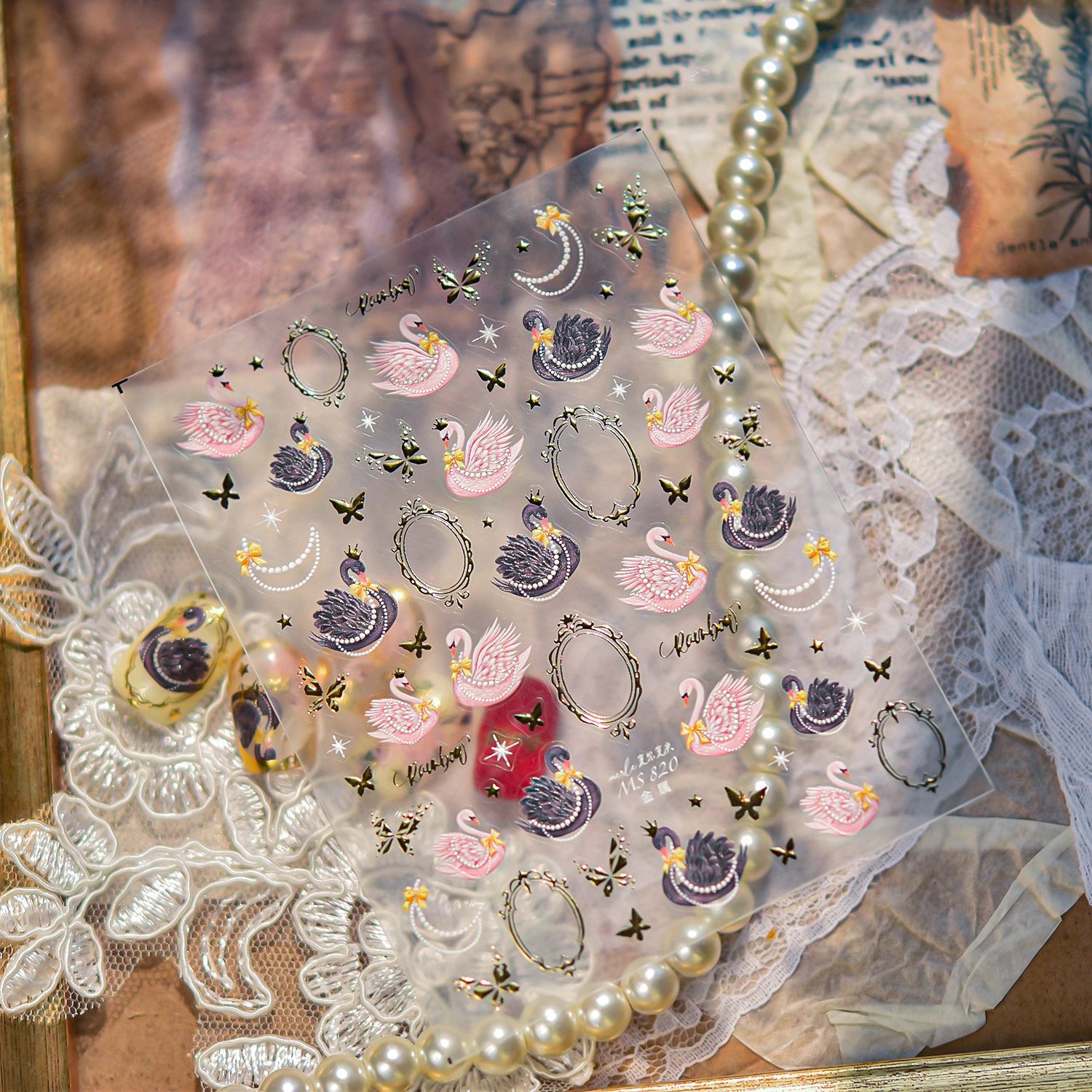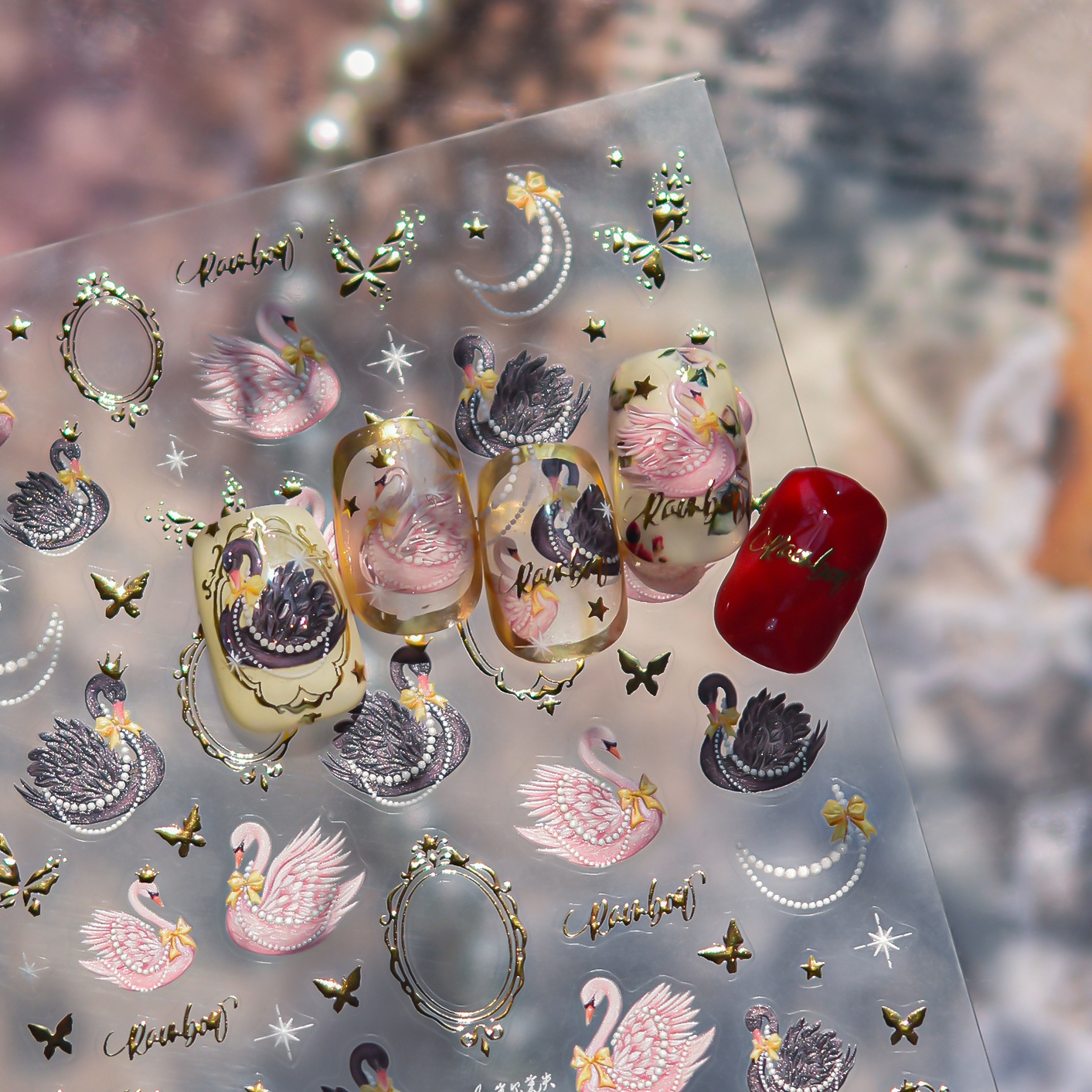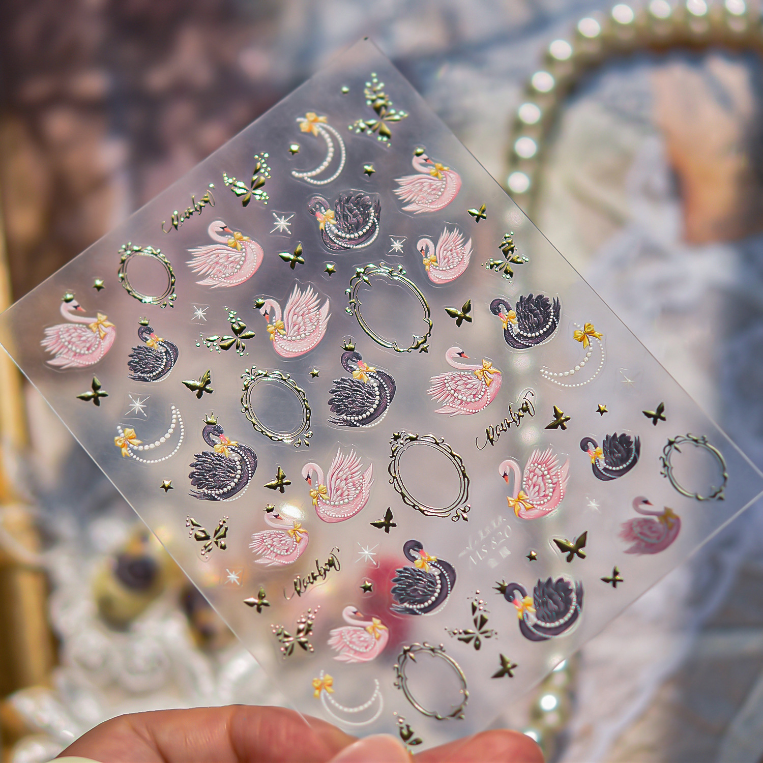 tomoni&모델 메탈 네일 아트 스티커 인 모던 심플 네일 스티커 화이트 스완 스티커 소재 혼합 스타일스토어 가기