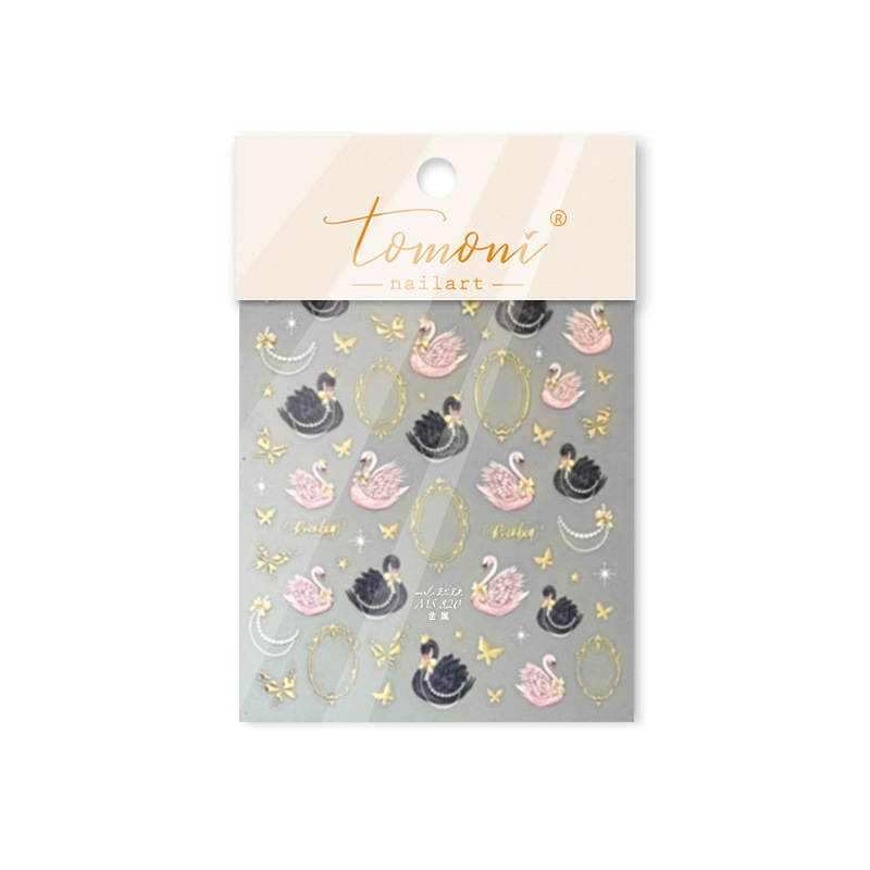 tomoni&모델 메탈 네일 아트 스티커 인 모던 심플 네일 스티커 화이트 스완 스티커 소재 혼합 스타일