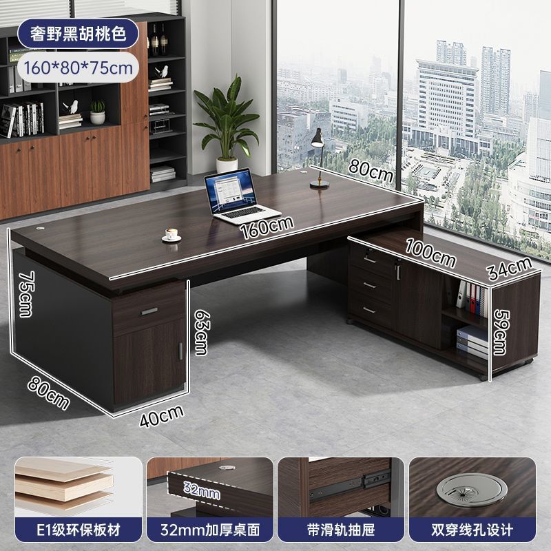 • [직원 책상 및 의자 + 사이드 캐비닛] 럭셔리 블랙 월넛 140*60cm