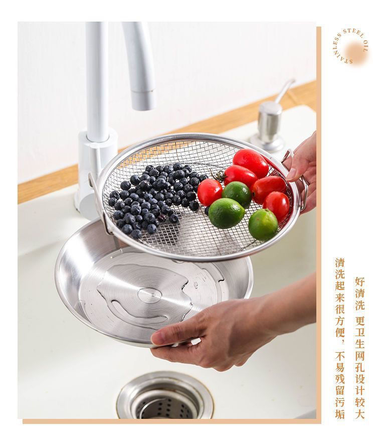 316 스테인레스 스틸 튀김 오일 제어 오일 배수구 주방 배수구 가정용 이중 귀 필터 에어 프라이어 적합스토어 가기