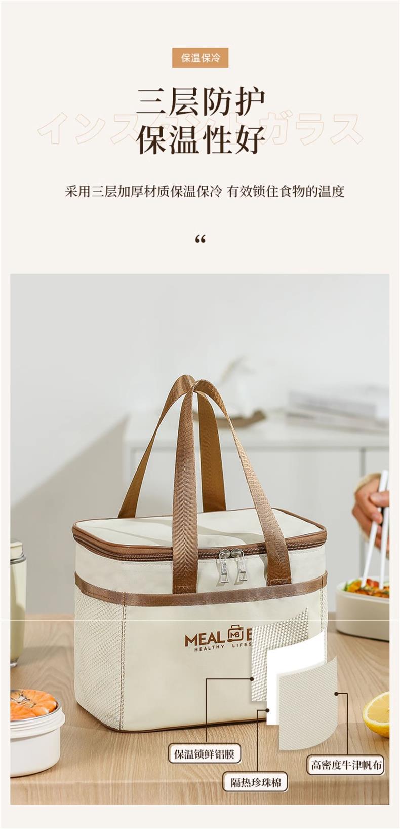 도시락 토트백, 보온팩, 야외 피크닉 대용량 식사가방, 직장인 도시락 가방, 두꺼운 알루미늄 호일스토어 가기