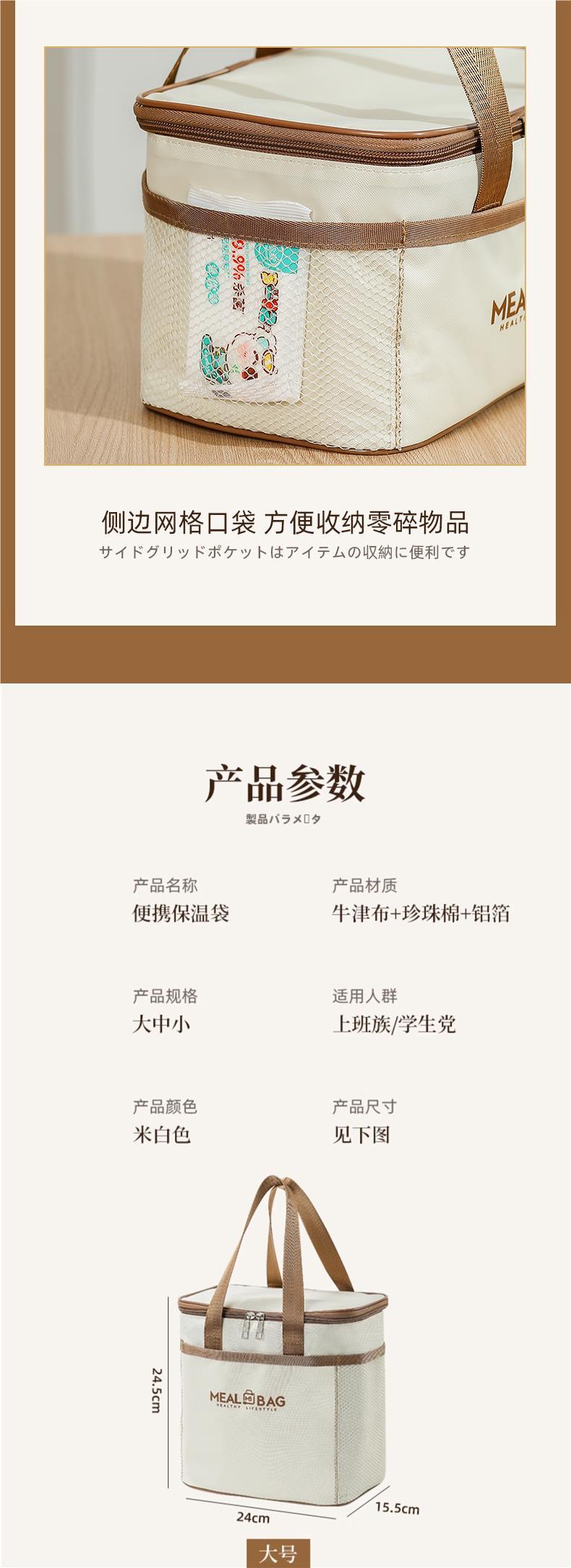 도시락 토트백, 보온팩, 야외 피크닉 대용량 식사가방, 직장인 도시락 가방, 두꺼운 알루미늄 호일
