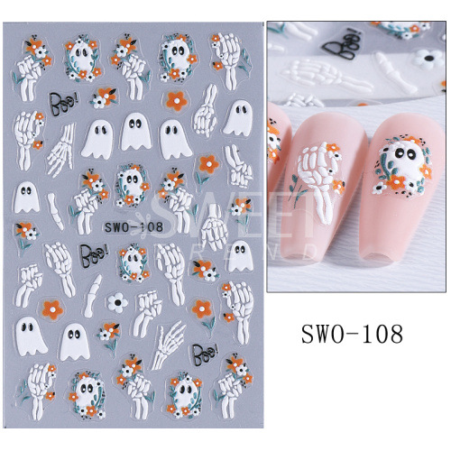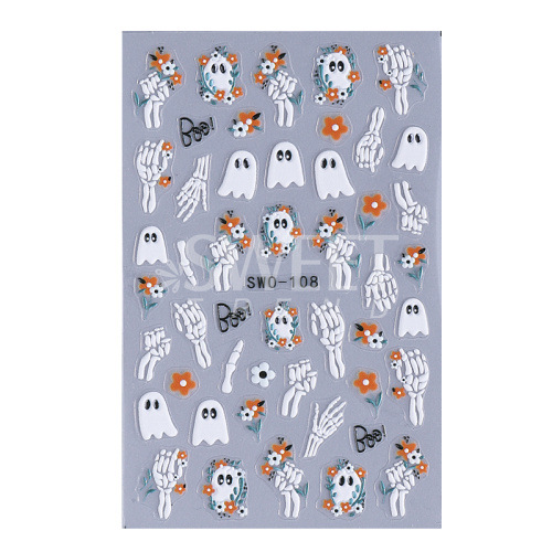 국경 간 새로운 네일 아트 스티커 할로윈 미라 유령 해골 호박 검은 고양이 거미줄 접착제 네일 스티커