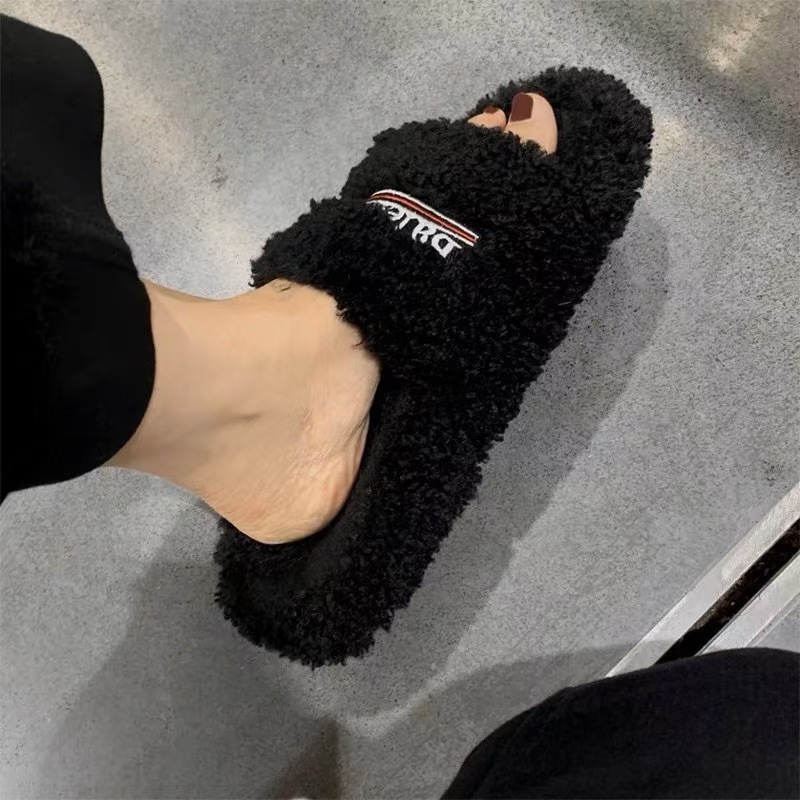 Ba* 여성용 모피 슬리퍼 2023 양털 두꺼운 밑창 슬리퍼 캐주얼 홈 미끄럼 방지 파리 모피 슬리퍼