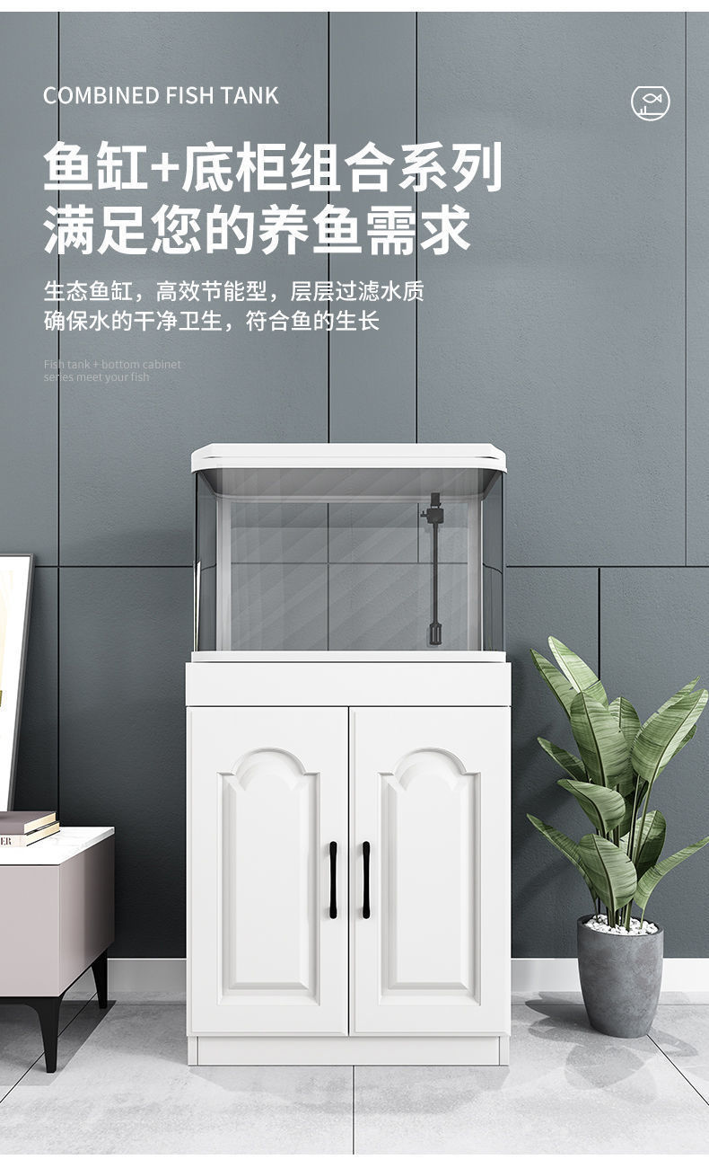 수족관 가정용 물 교환 없음 생태학적 열 구부러진 금붕어 수조 캐비닛 일체형 바닥부터 천장까지의 작은 간단한 물고기 수조 세트스토어 가기