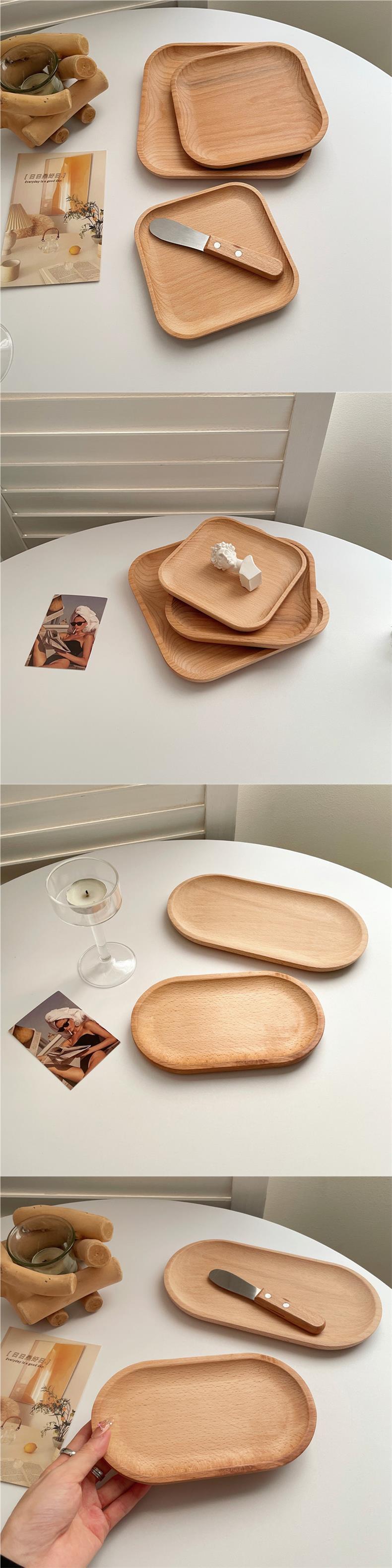 인스 스타일 나무 트레이 둥근 나무 트레이 일본식 타원형 너도밤나무 작은 나무 접시 우유 스낵 트레이 포즈 Jueqin스토어 가기