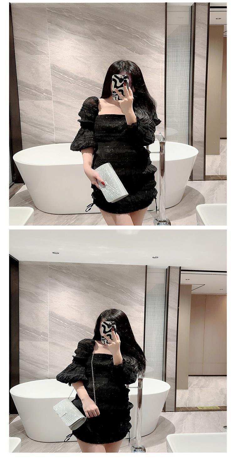 Spot e-commerce 2025 새로운 주름 미니 클러치 백 반짝이는 이브닝 백 체인 크로스 바디