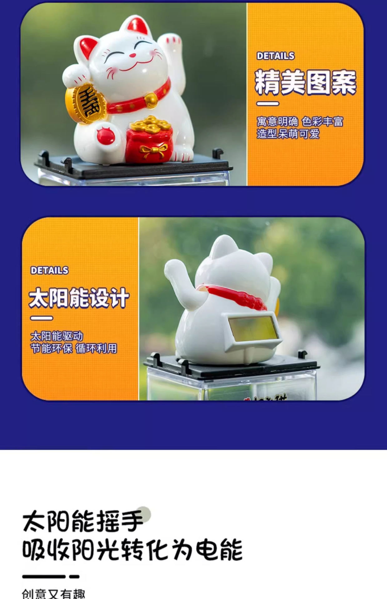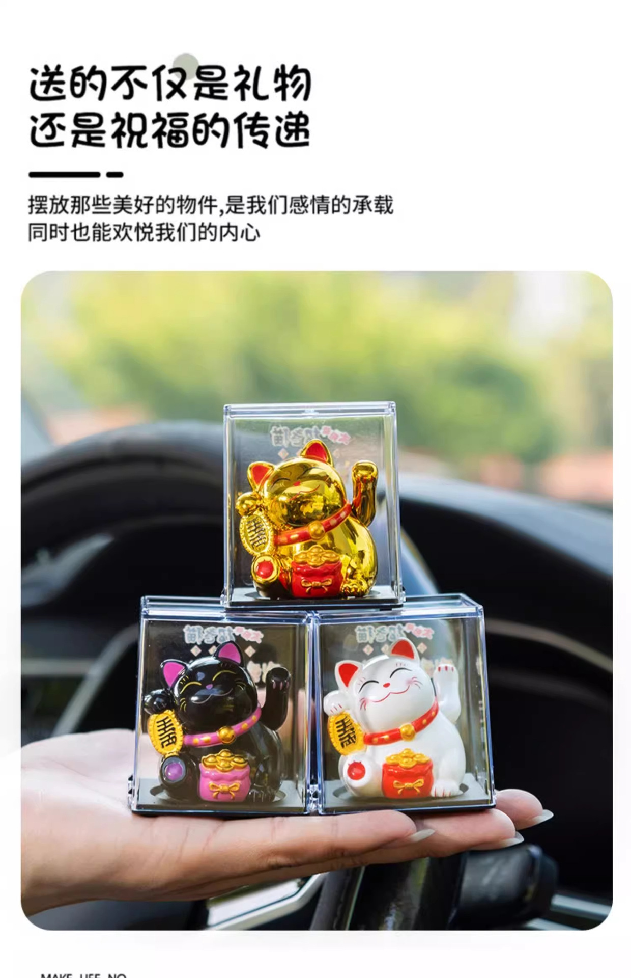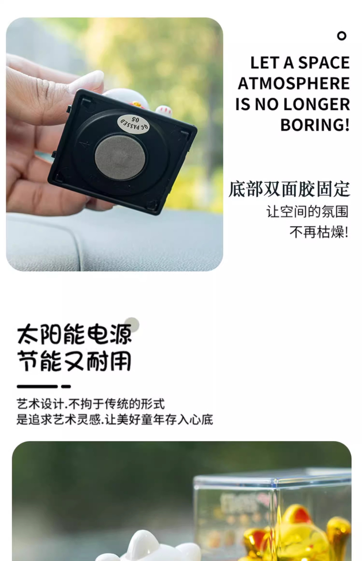 2025 새로운 태양열 구동 행운의 고양이 자동차 대시 보드 작은 장식품 자동차 만화 자동 흔들리는 고양이 장식품스토어 가기