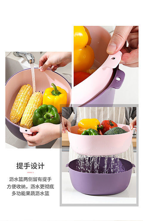 이중층 플라스틱 식기 세척 바구니 배수 바구니 주방 다기능 거실 가정용 과일 접시 과일 및 야채 세척 바구니스토어 가기
