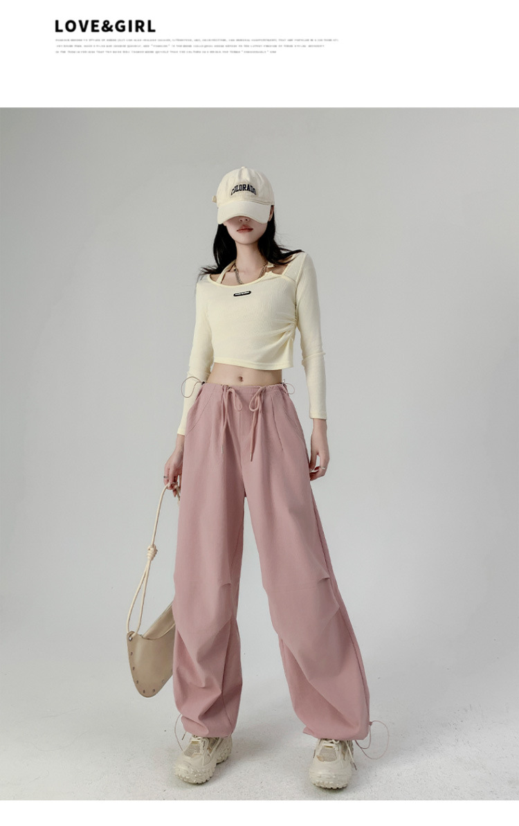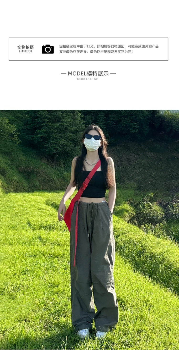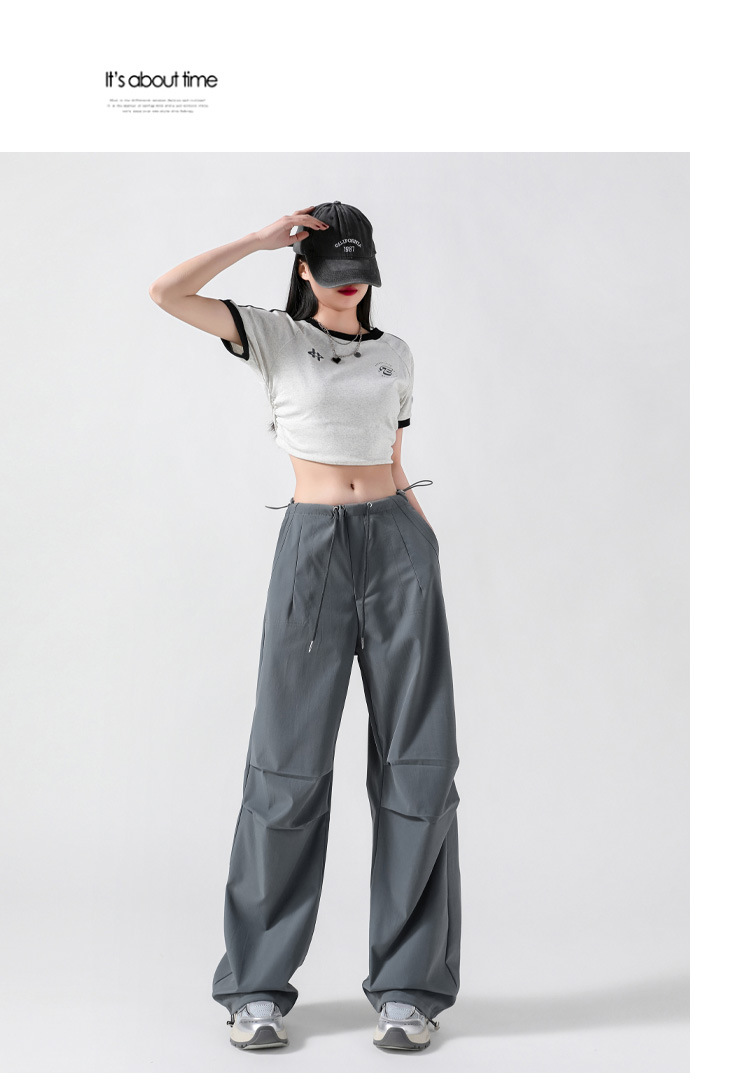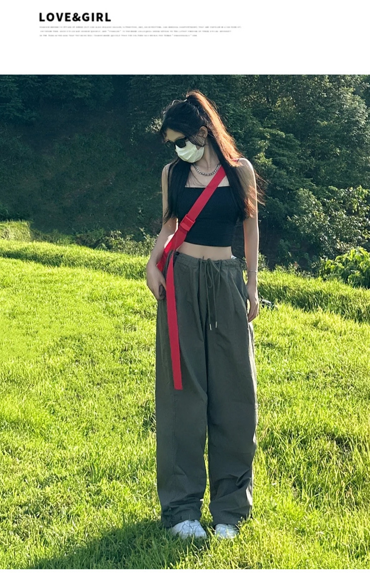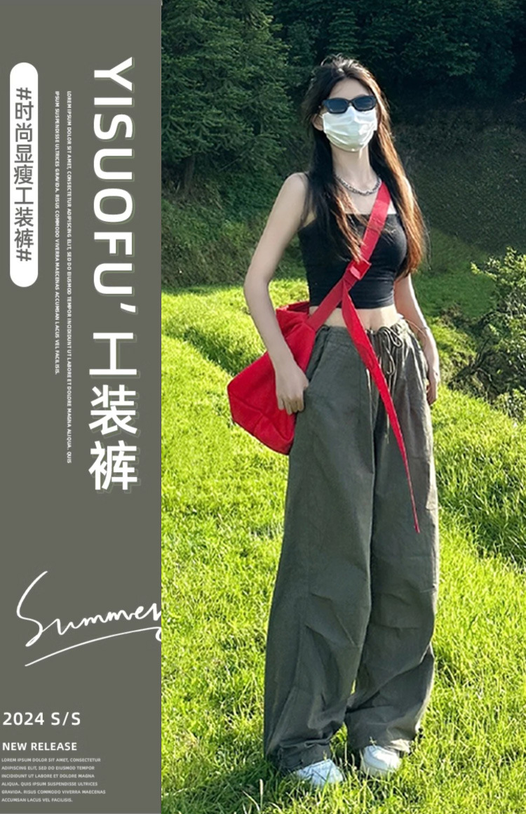 여성을위한 클리어런스 아메리칸 스타일 낙하산 카고 바지 2025 새로운 봄, 가을 루즈 캐주얼 속건성 하이킹 파라트리퍼 와이드 레그 팬츠스토어 가기