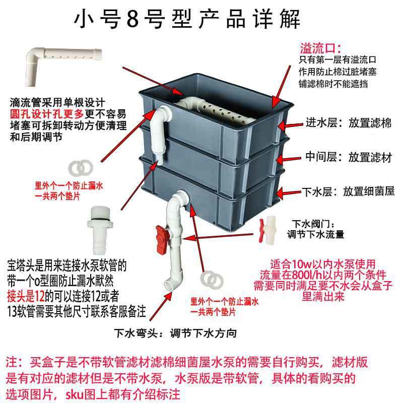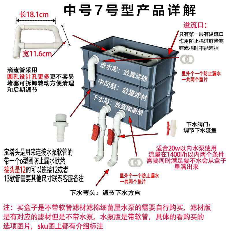 • 워터 펌프 및 호스가 포함된 필터 재료가 포함된 소형 4층