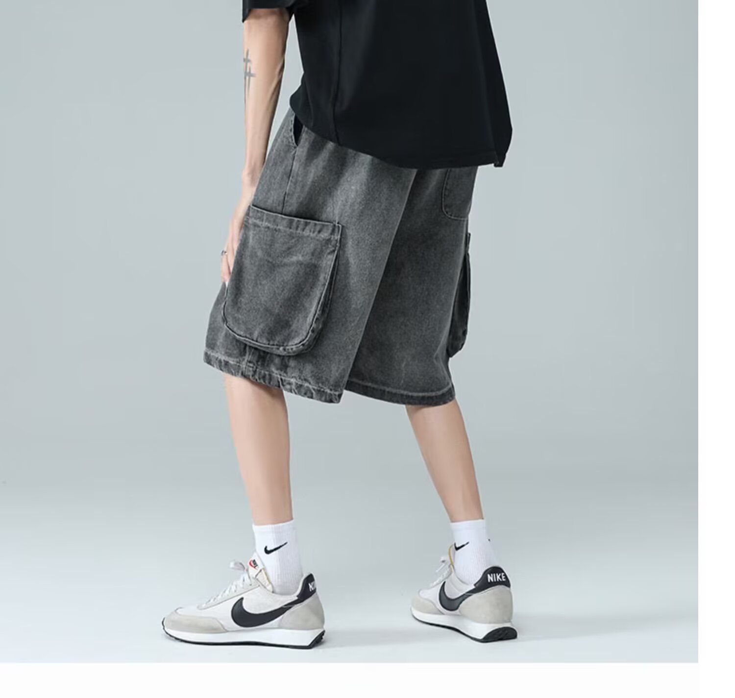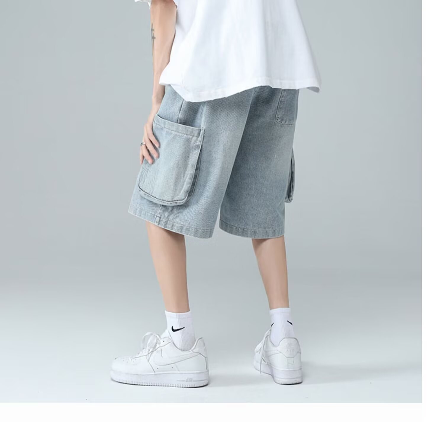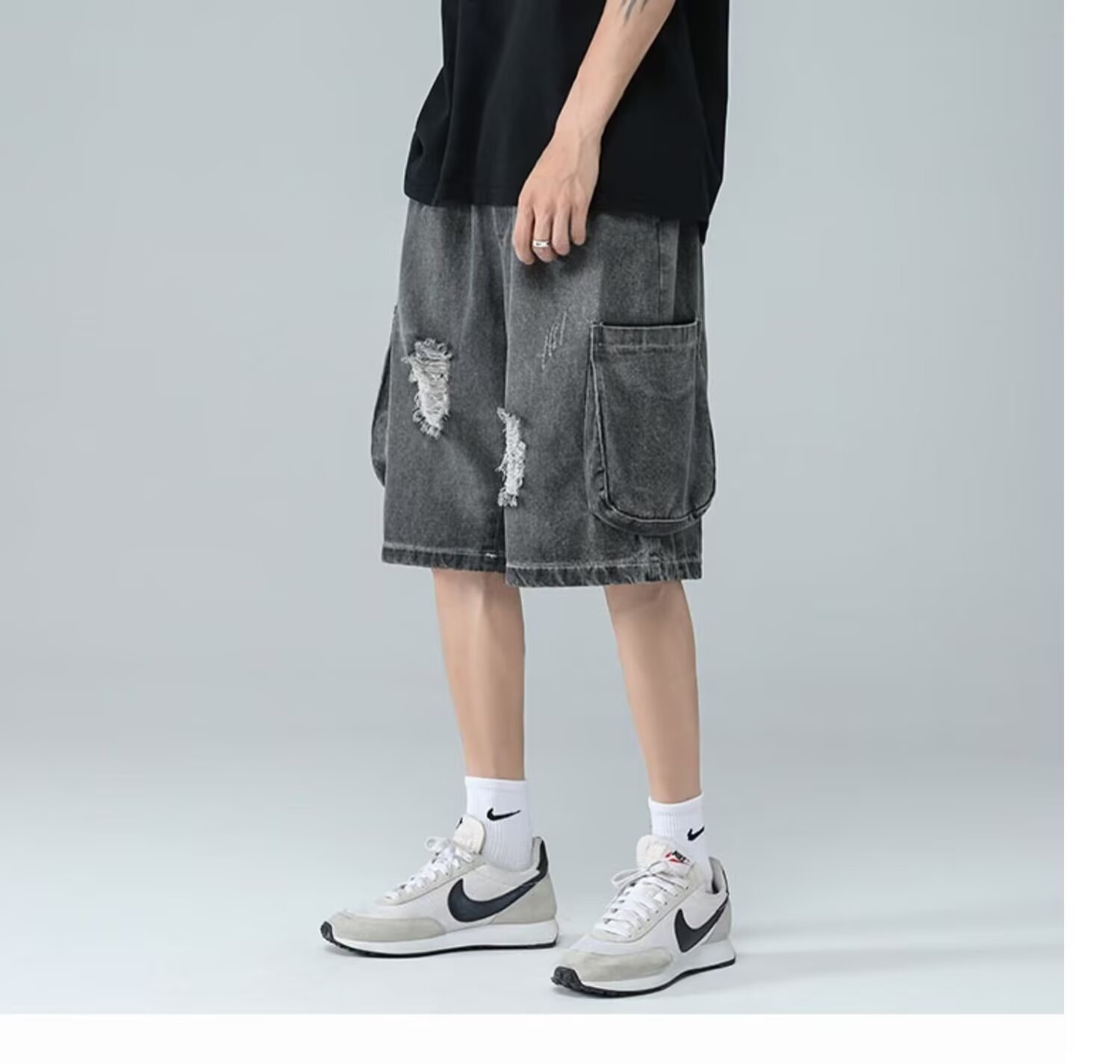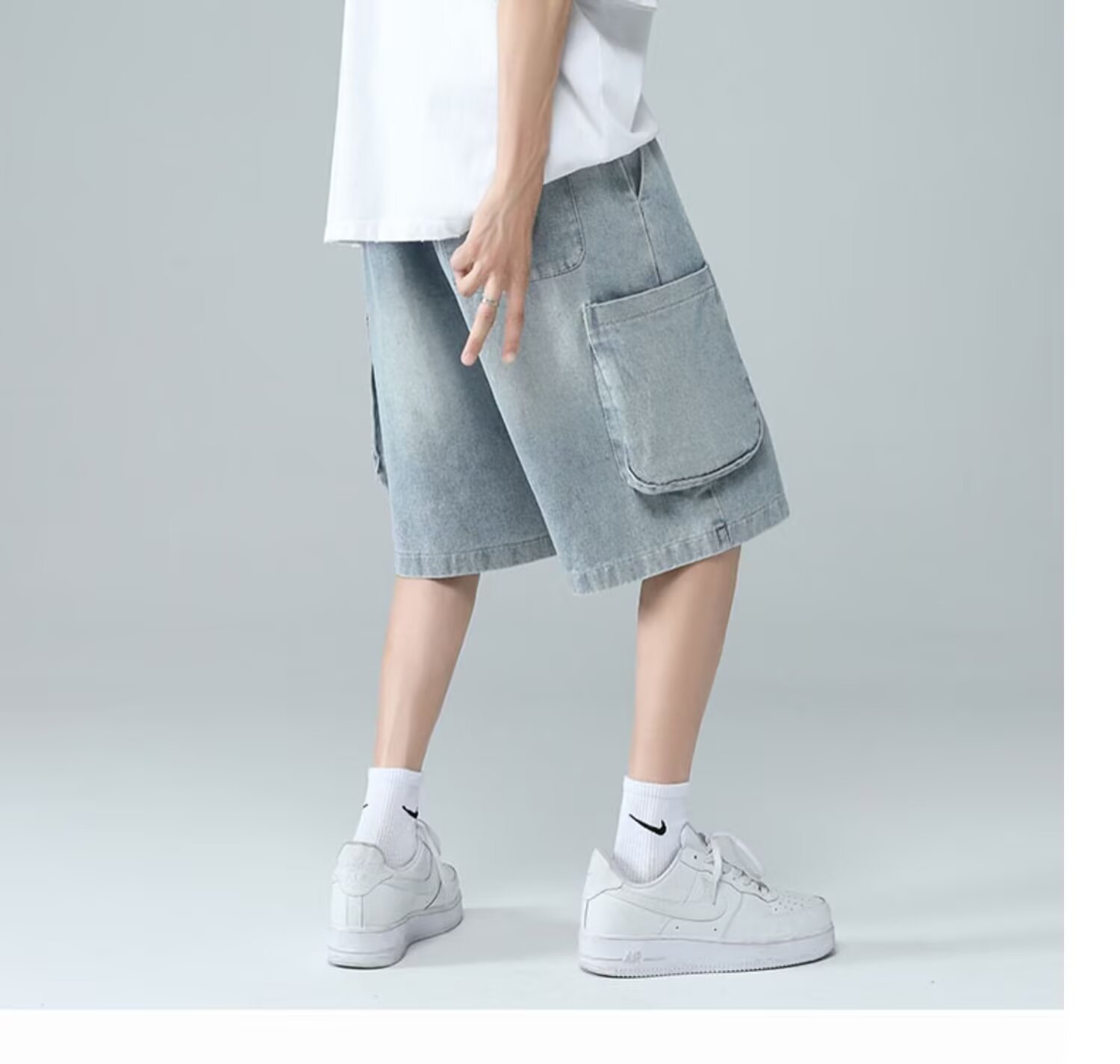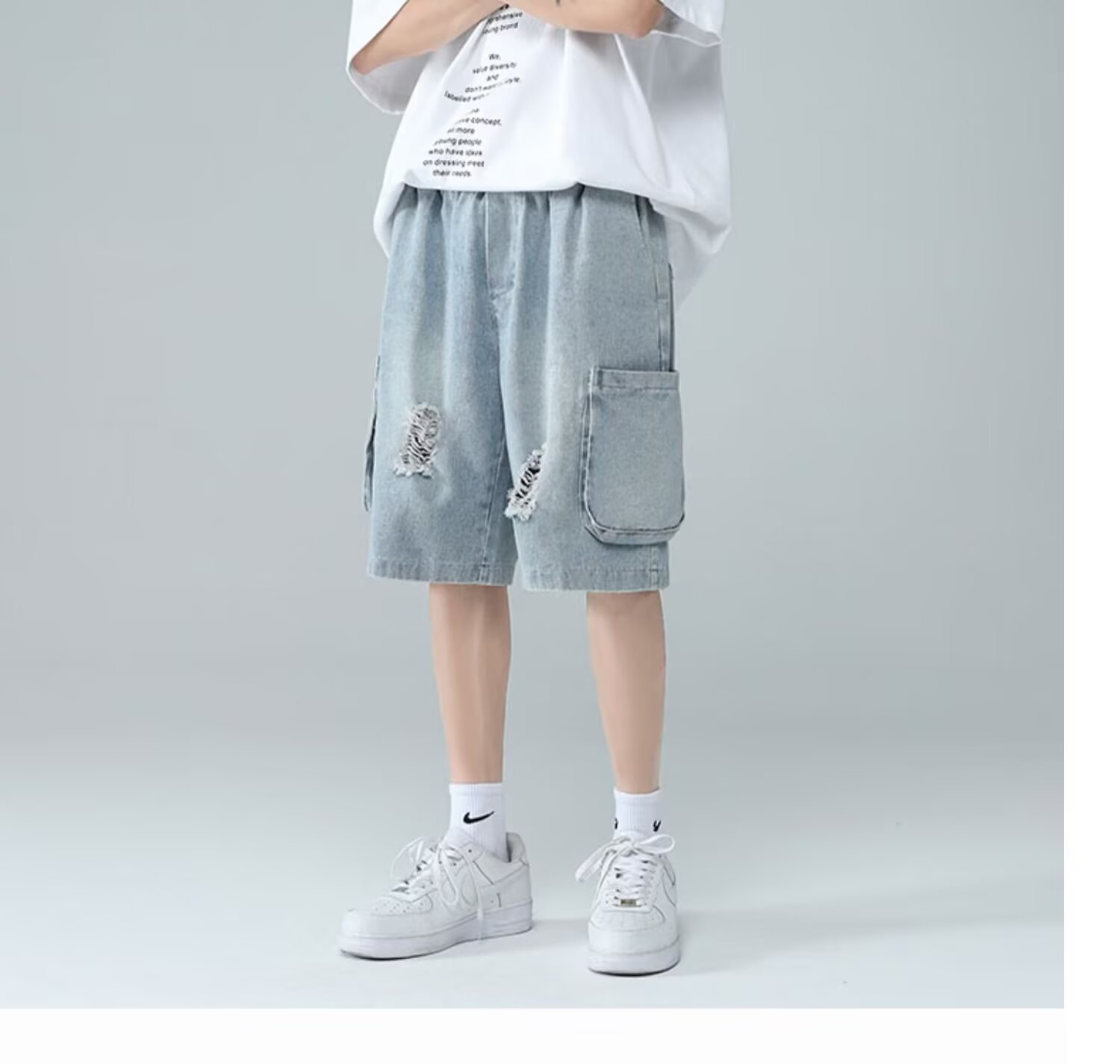 리퍼드 데님 반바지 남성 여름 얇은 트렌디 브랜드 작업복 바지 루즈한 5부 바지 아메리칸 하이 스트리트 빅 팬츠