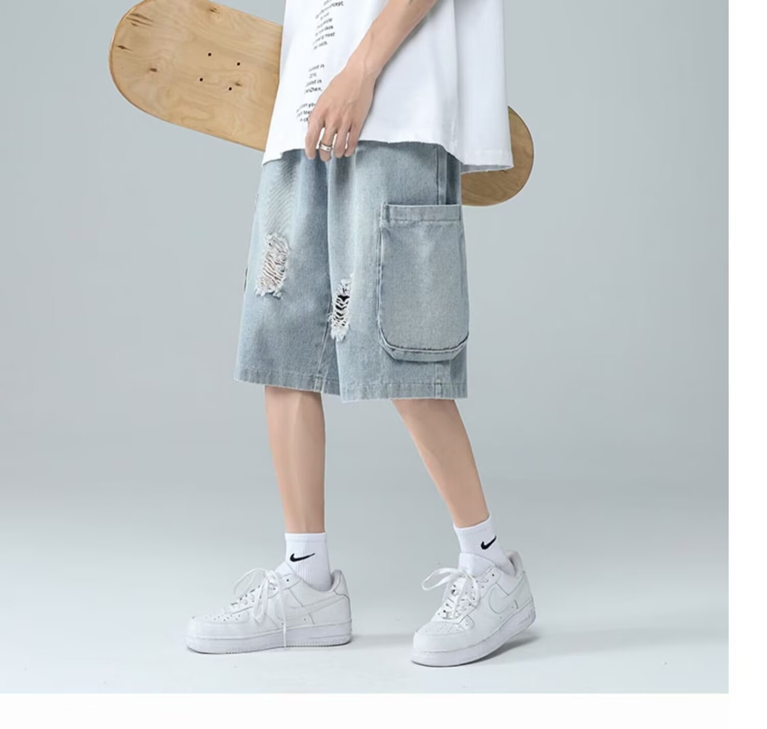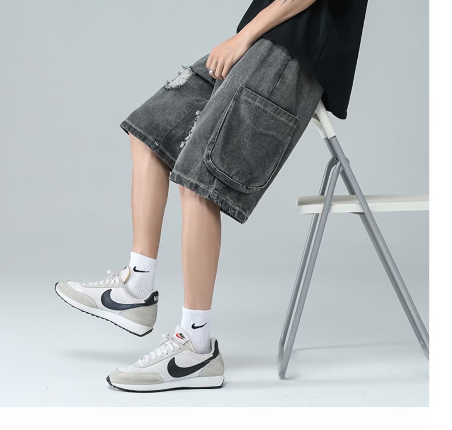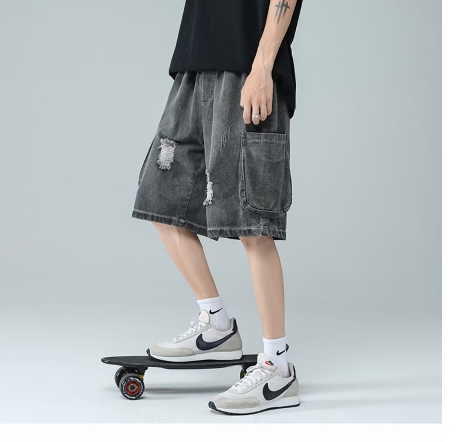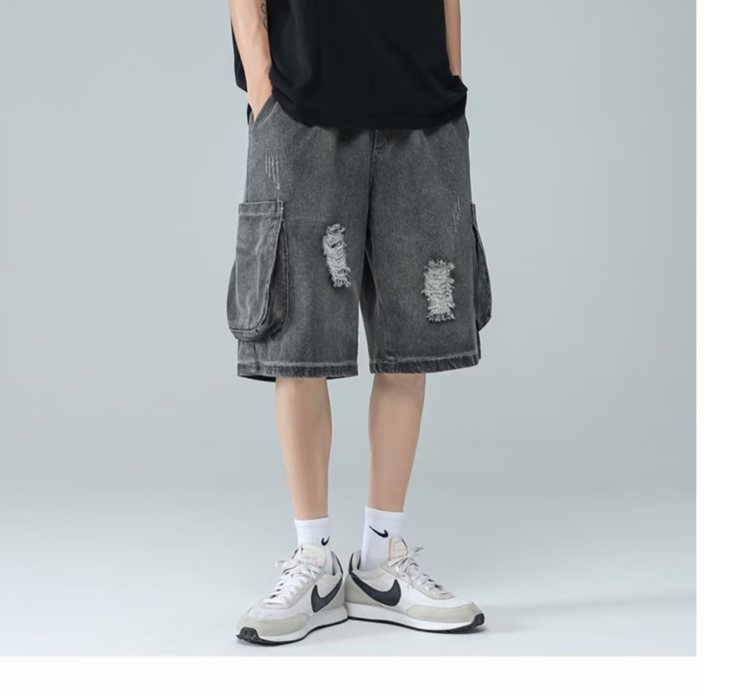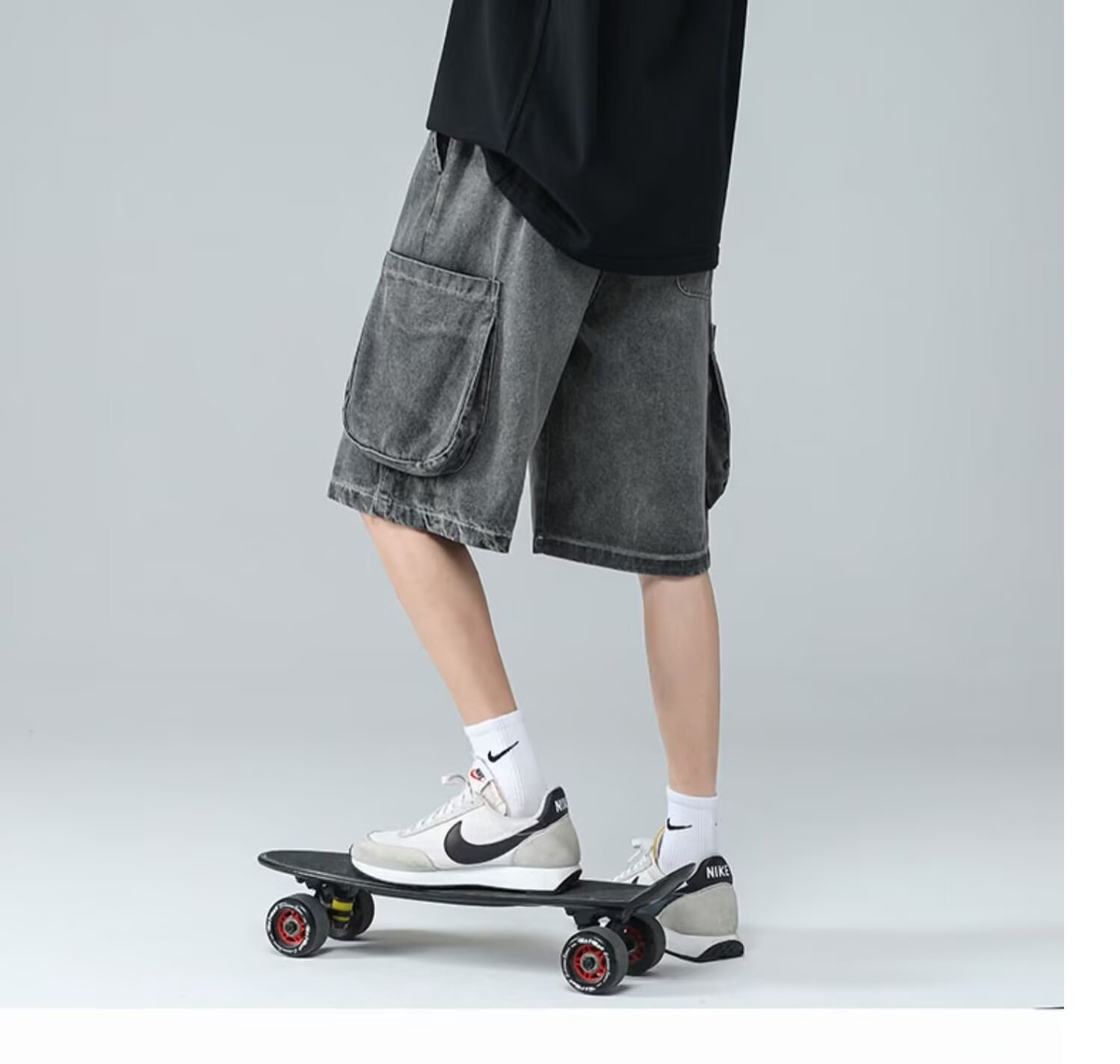 리퍼드 데님 반바지 남성 여름 얇은 트렌디 브랜드 작업복 바지 루즈한 5부 바지 아메리칸 하이 스트리트 빅 팬츠