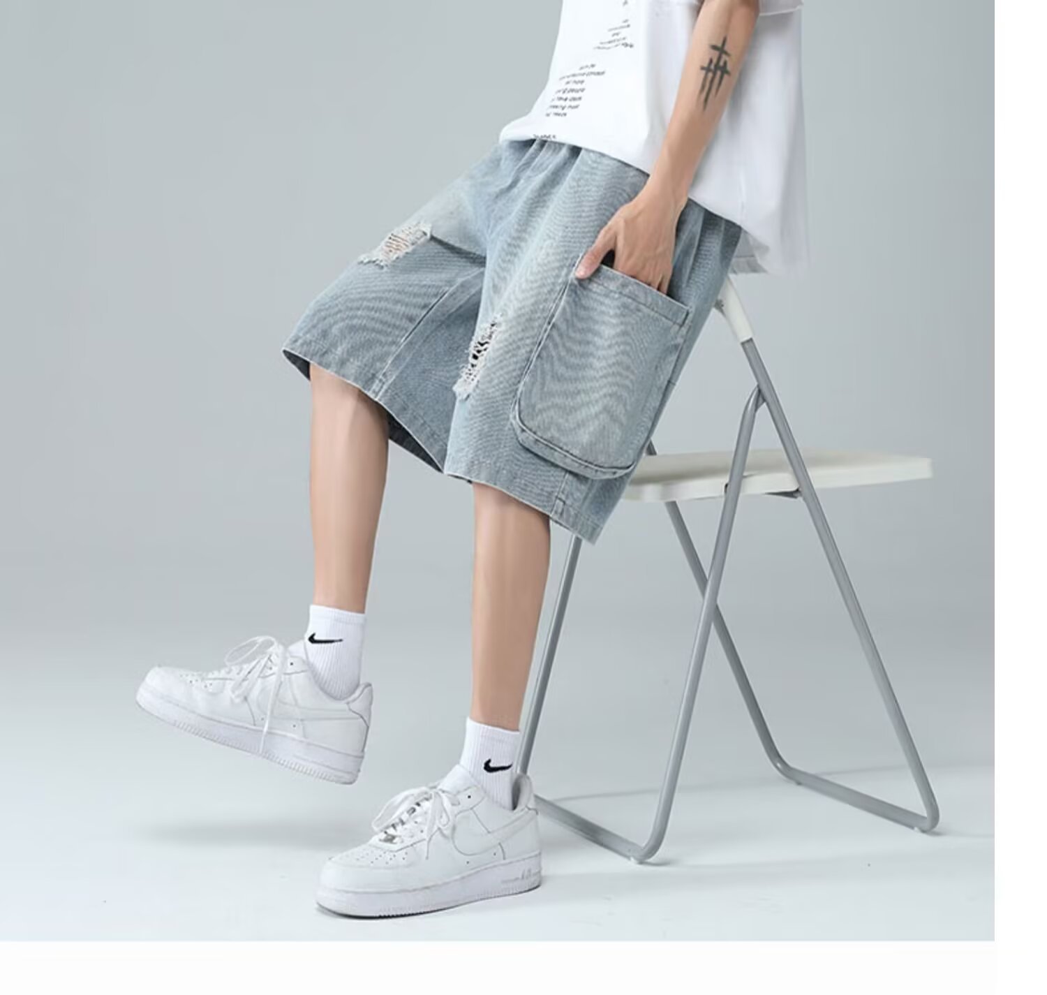 리퍼드 데님 반바지 남성 여름 얇은 트렌디 브랜드 작업복 바지 루즈한 5부 바지 아메리칸 하이 스트리트 빅 팬츠스토어 가기