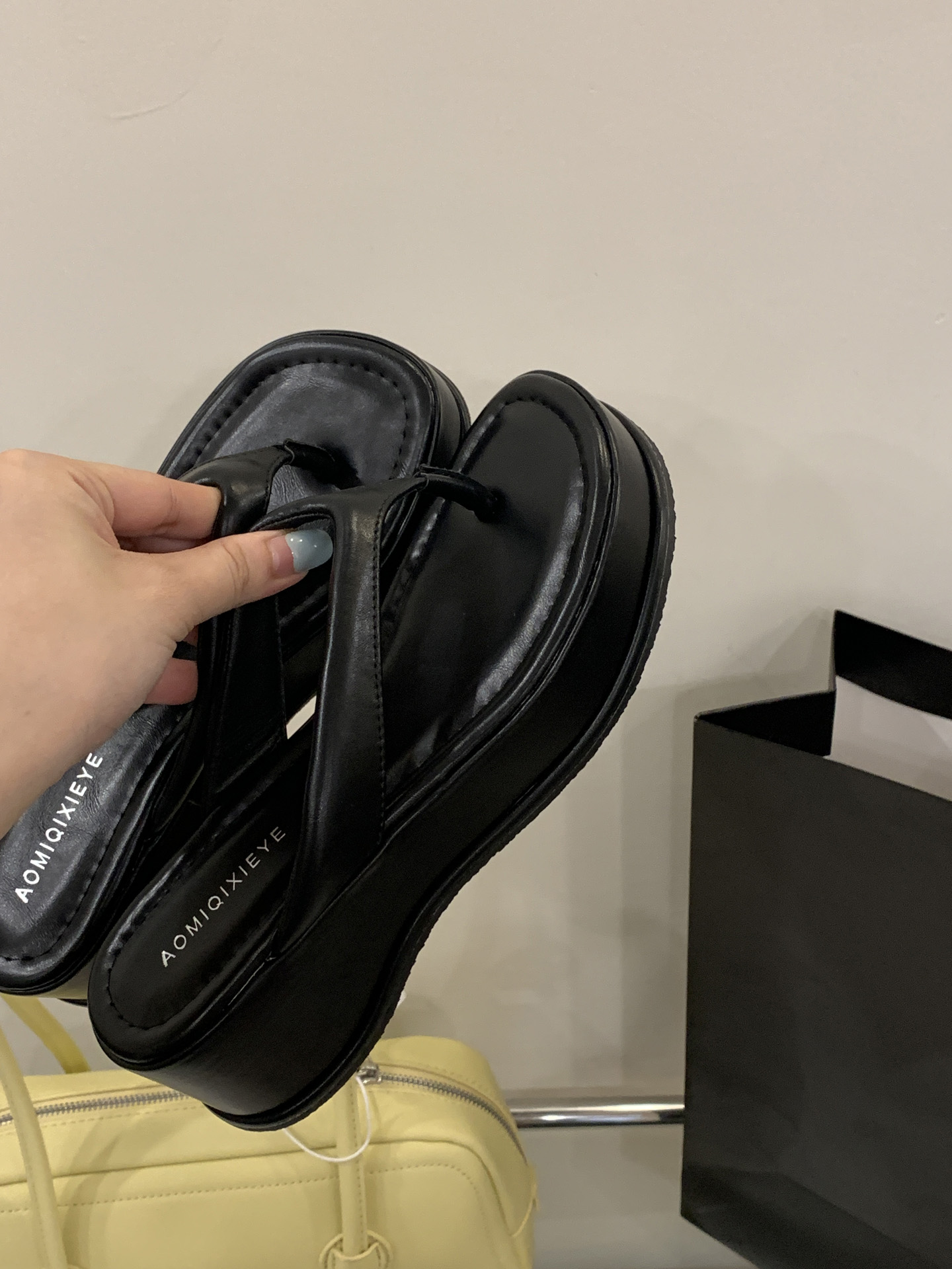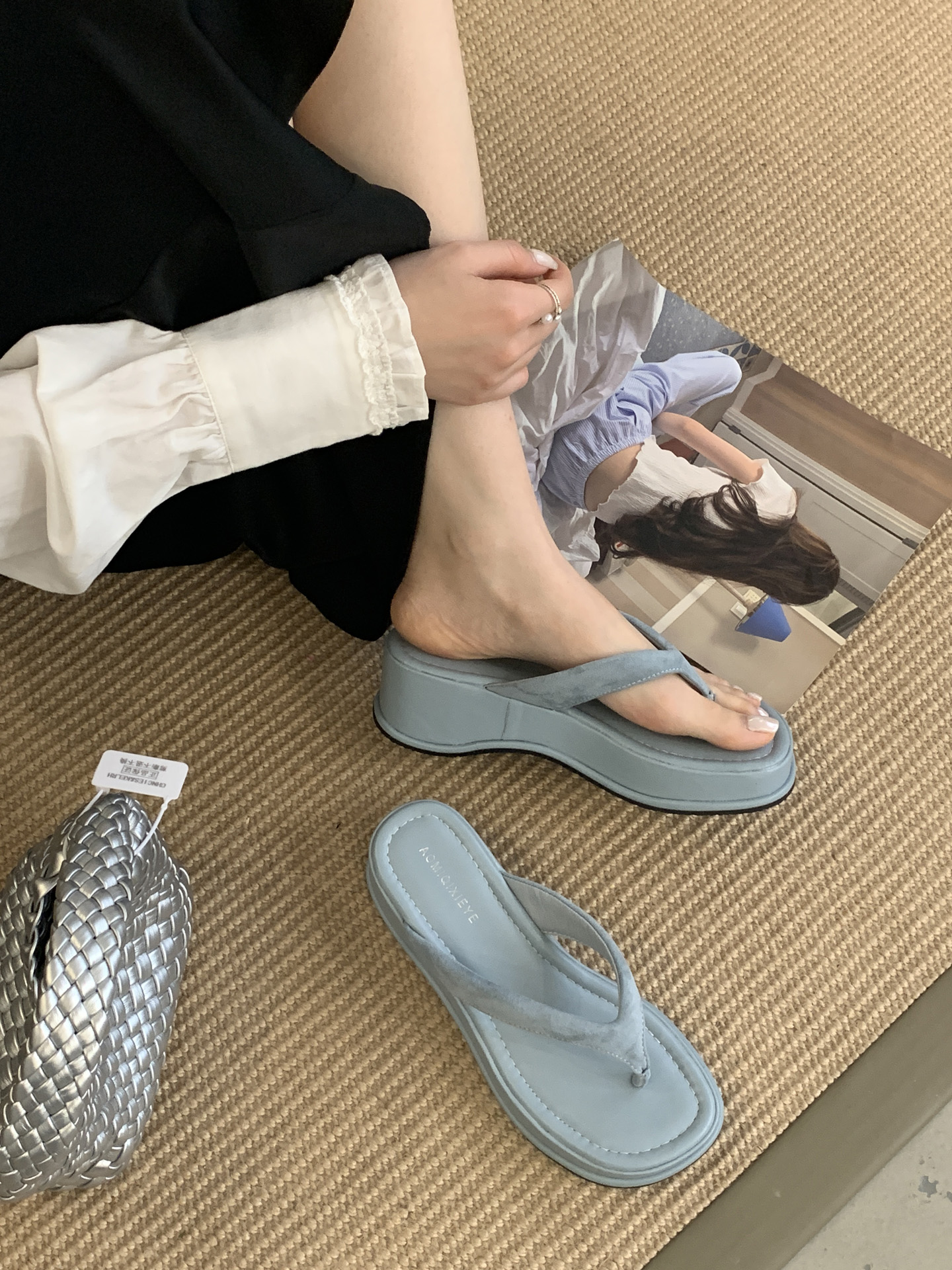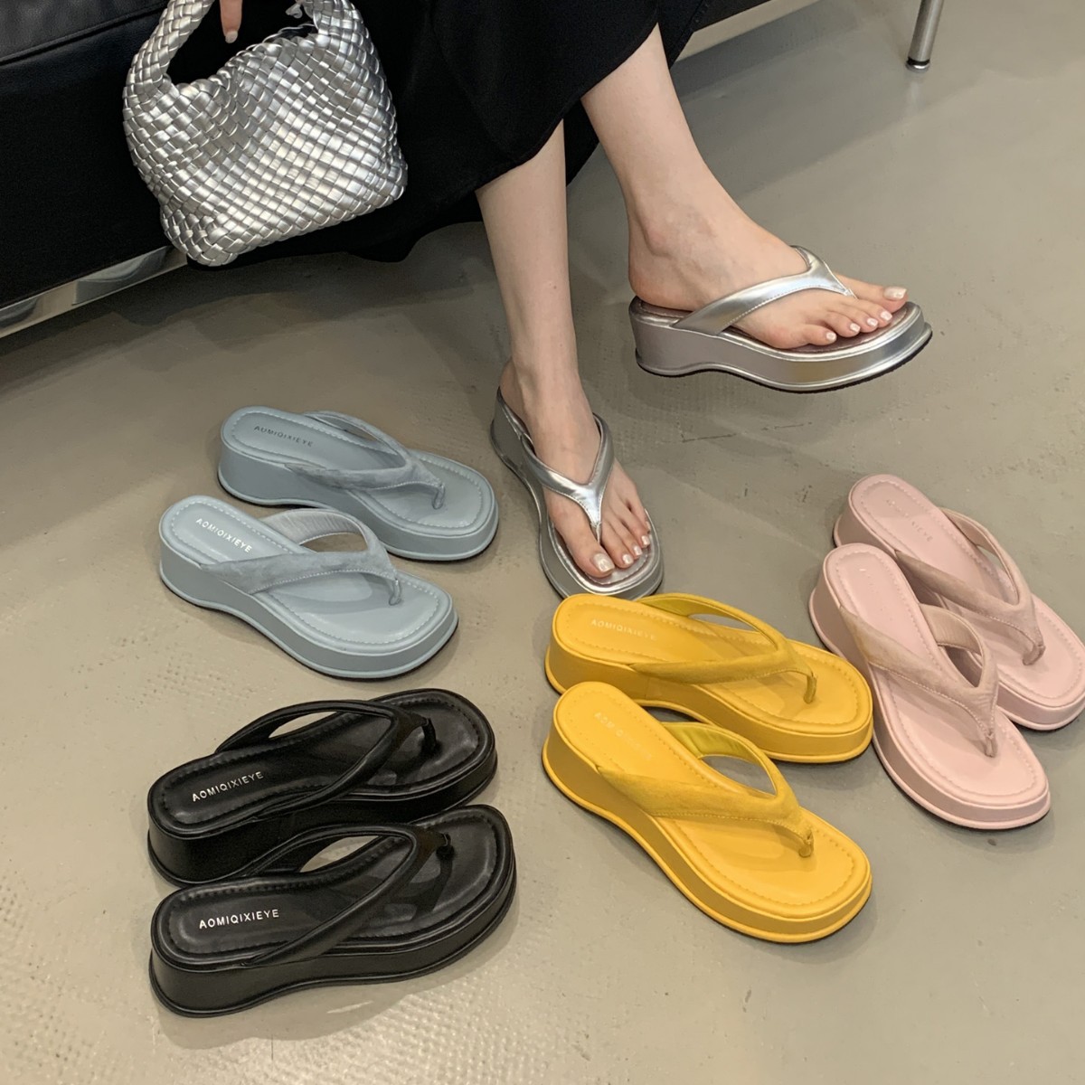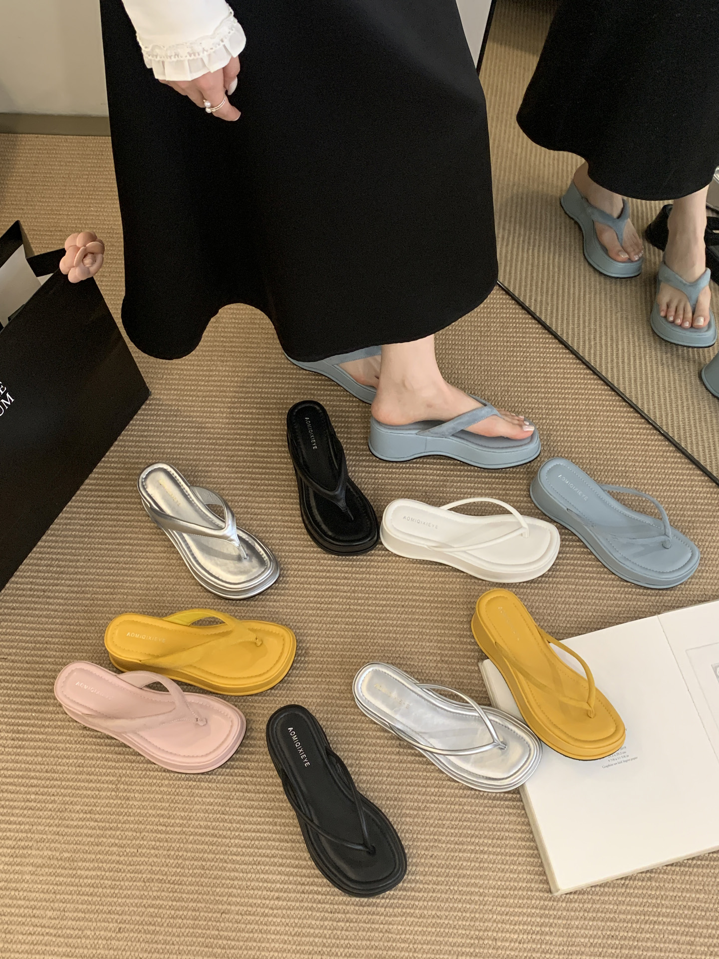 아름다운 웨지 힐 플립 플롭 2025 여름 아우터웨어 새로운 요정 스타일 두꺼운 밑창 하이힐 샌들스토어 가기
