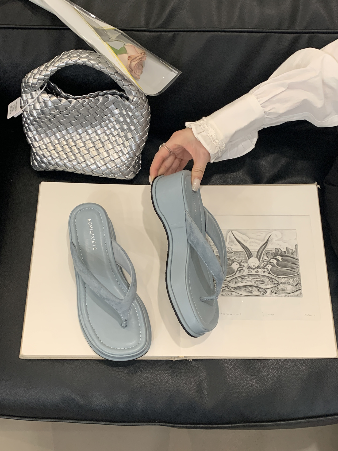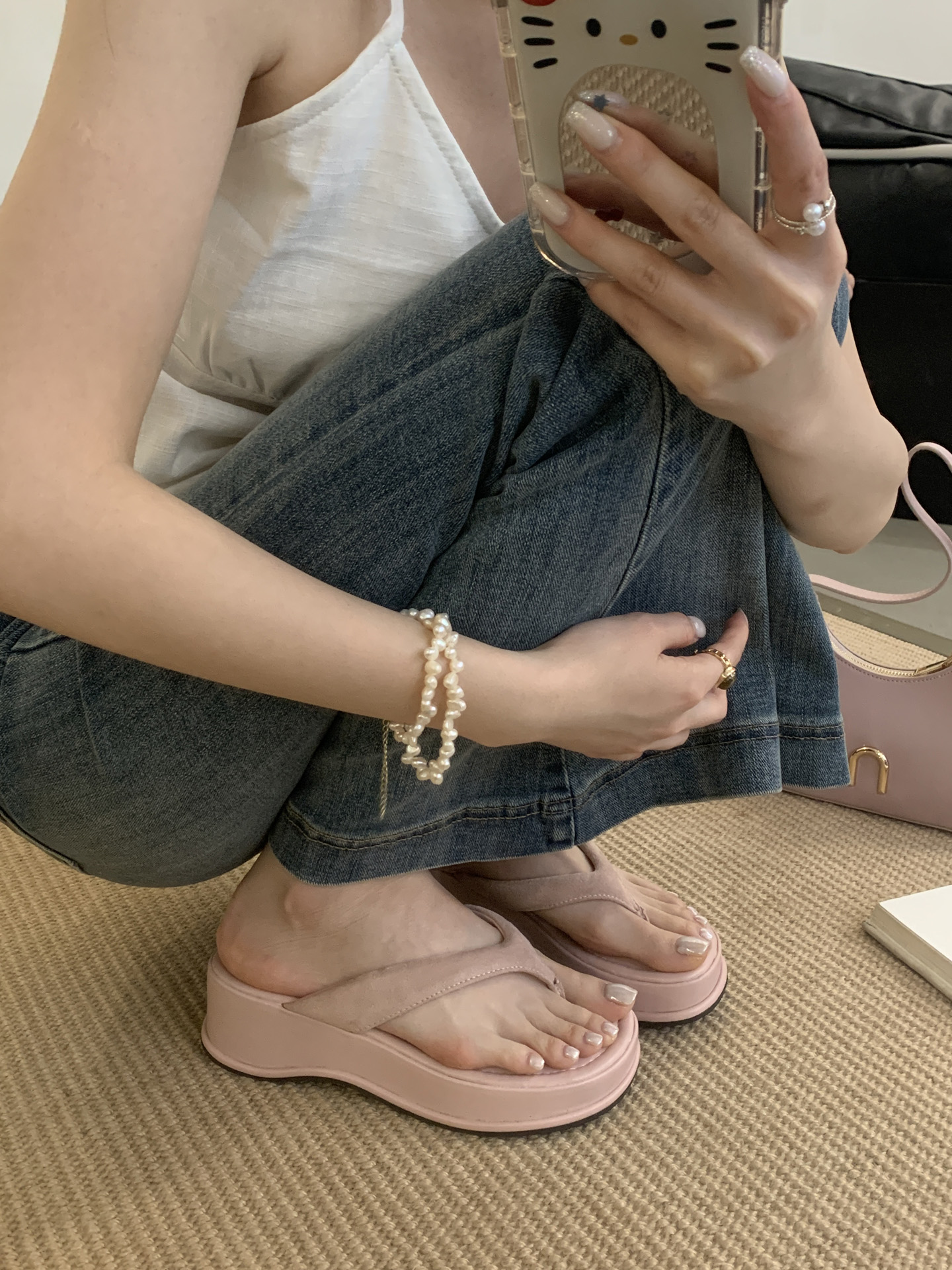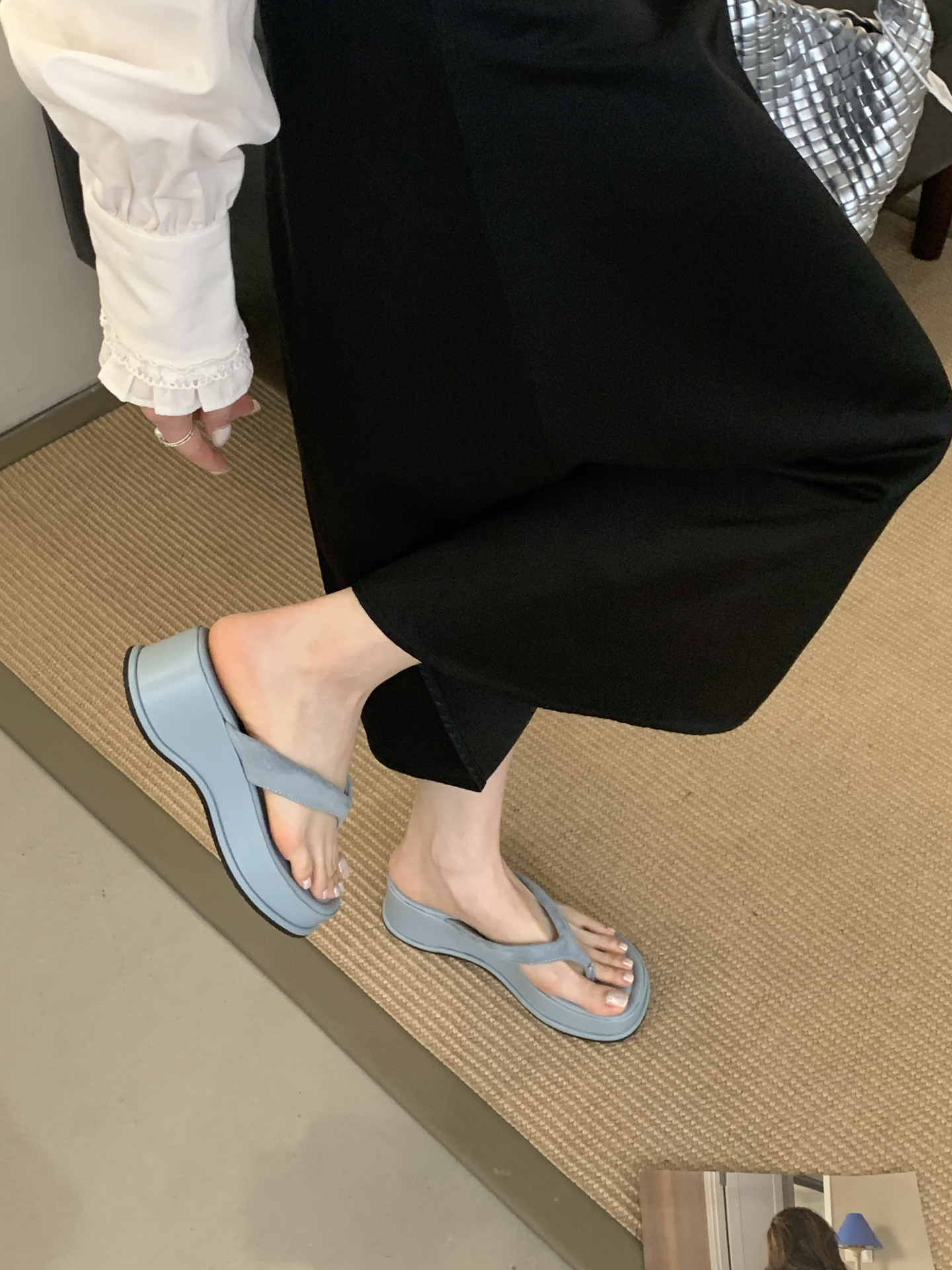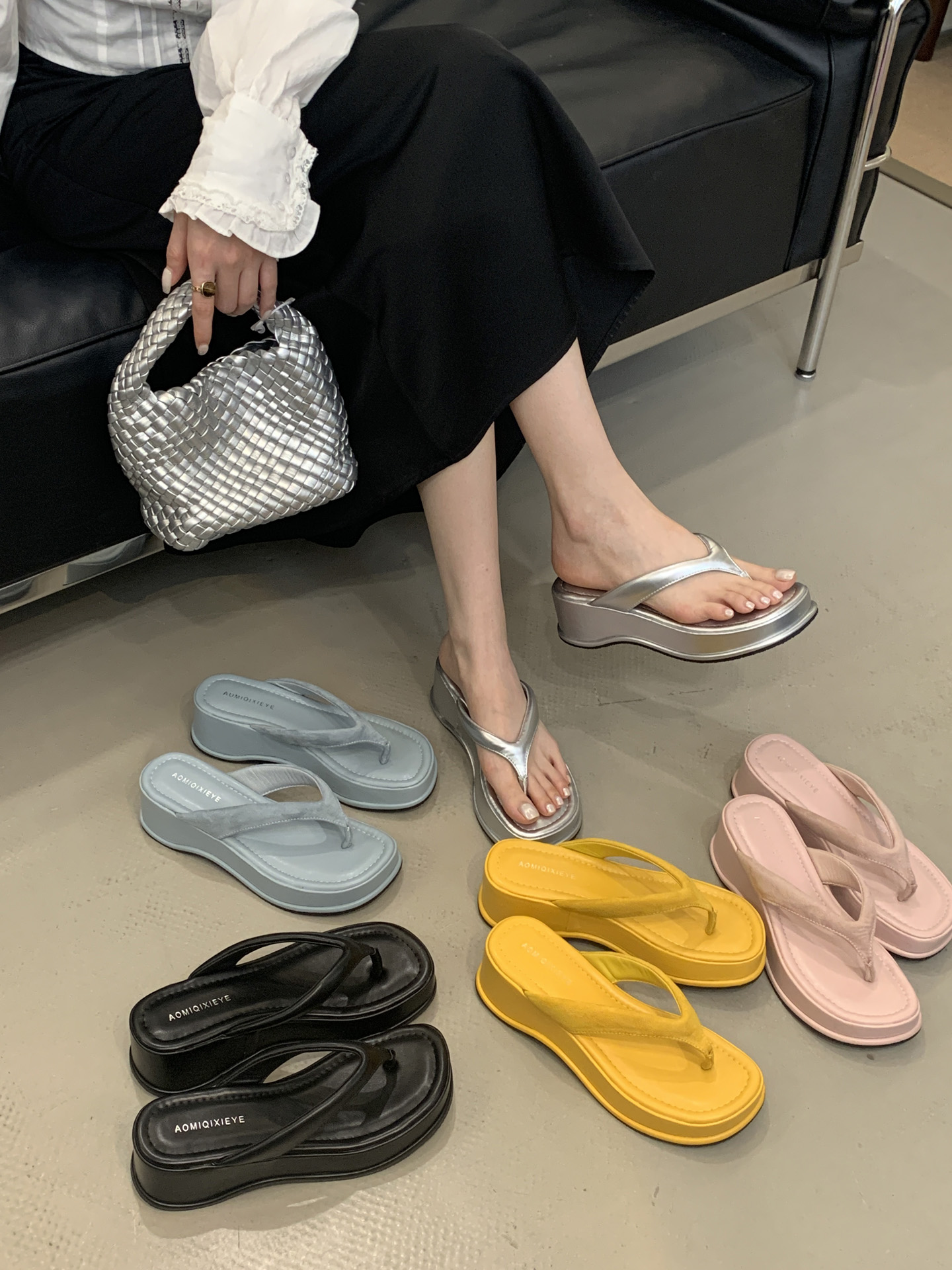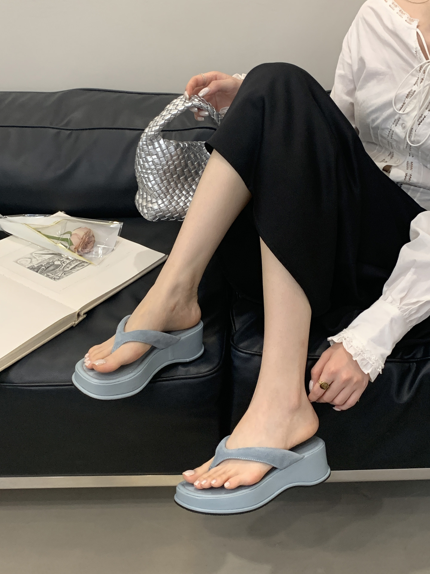 아름다운 웨지 힐 플립 플롭 2025 여름 아우터웨어 새로운 요정 스타일 두꺼운 밑창 하이힐 샌들스토어 가기
