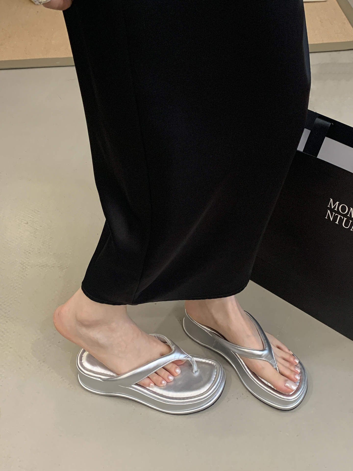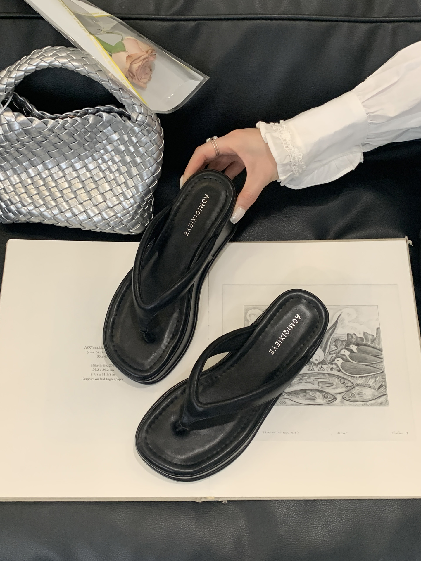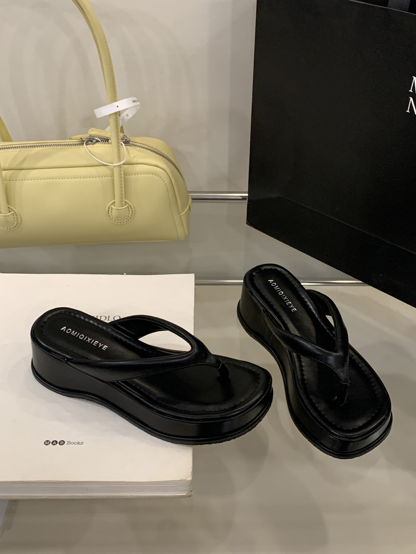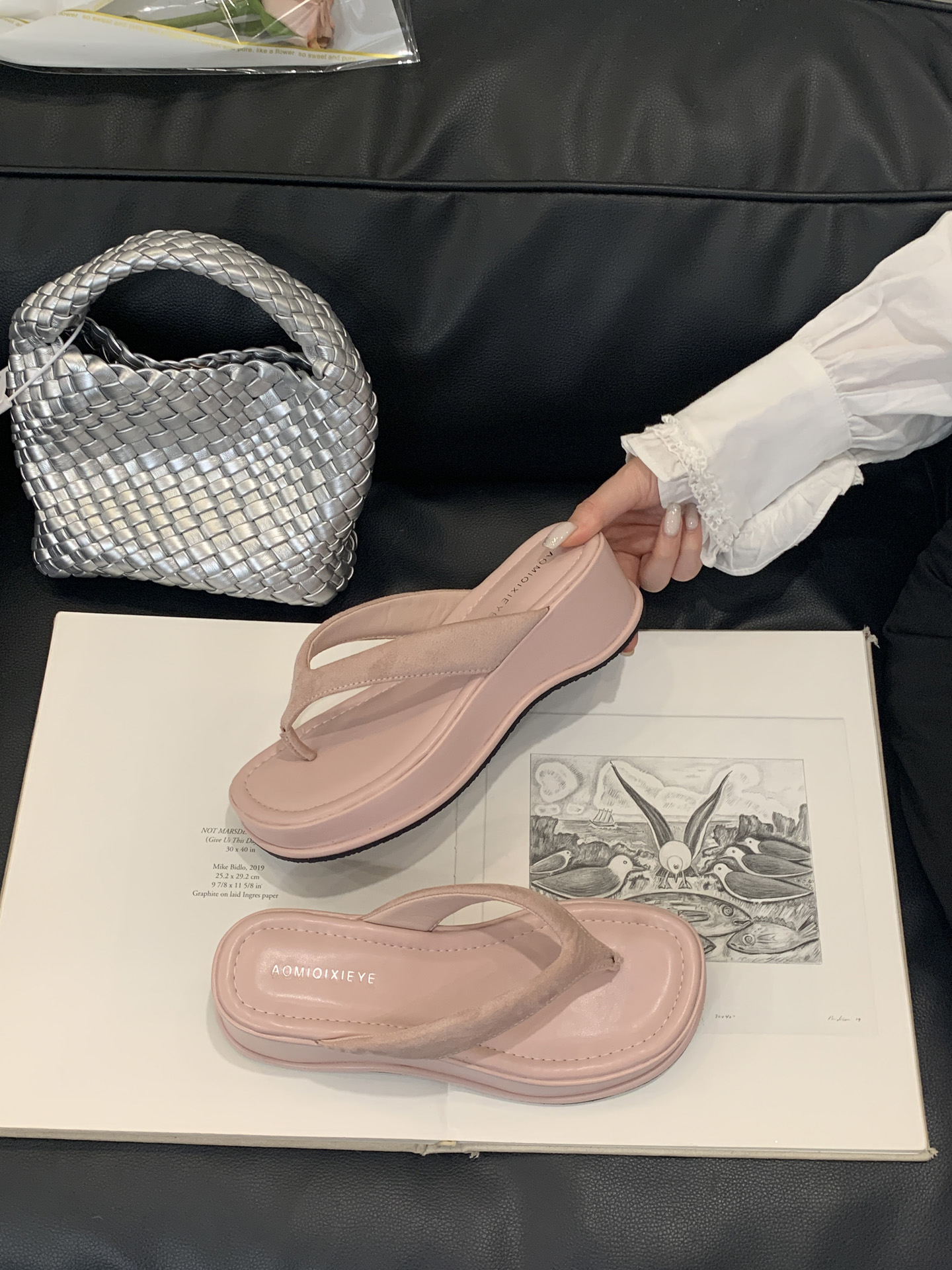 아름다운 웨지 힐 플립 플롭 2025 여름 아우터웨어 새로운 요정 스타일 두꺼운 밑창 하이힐 샌들스토어 가기