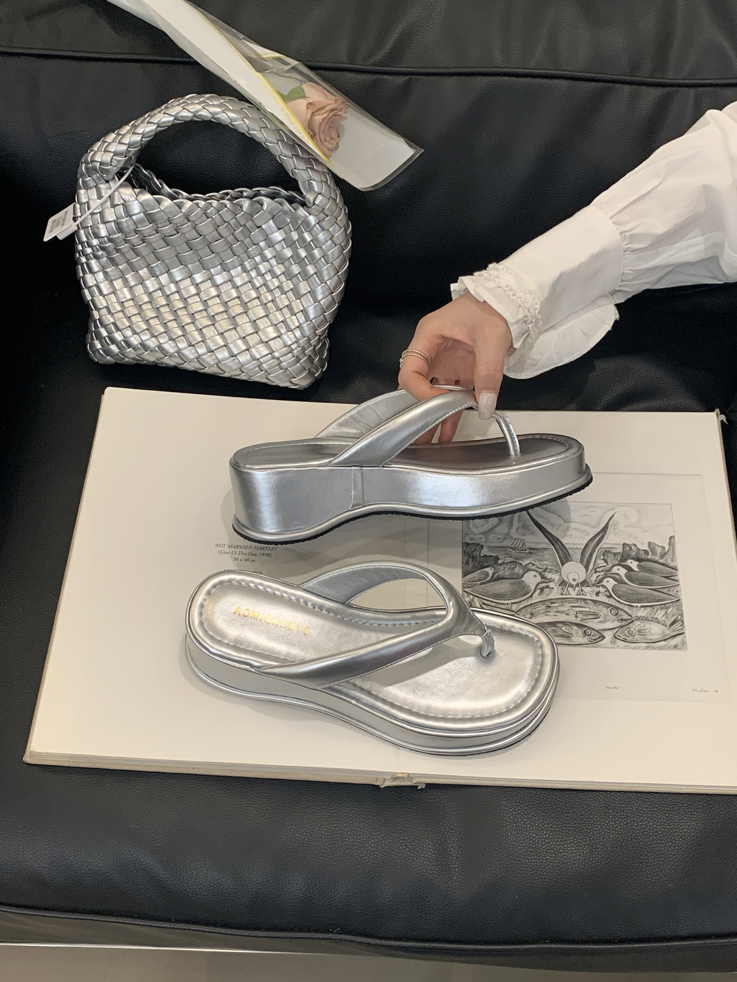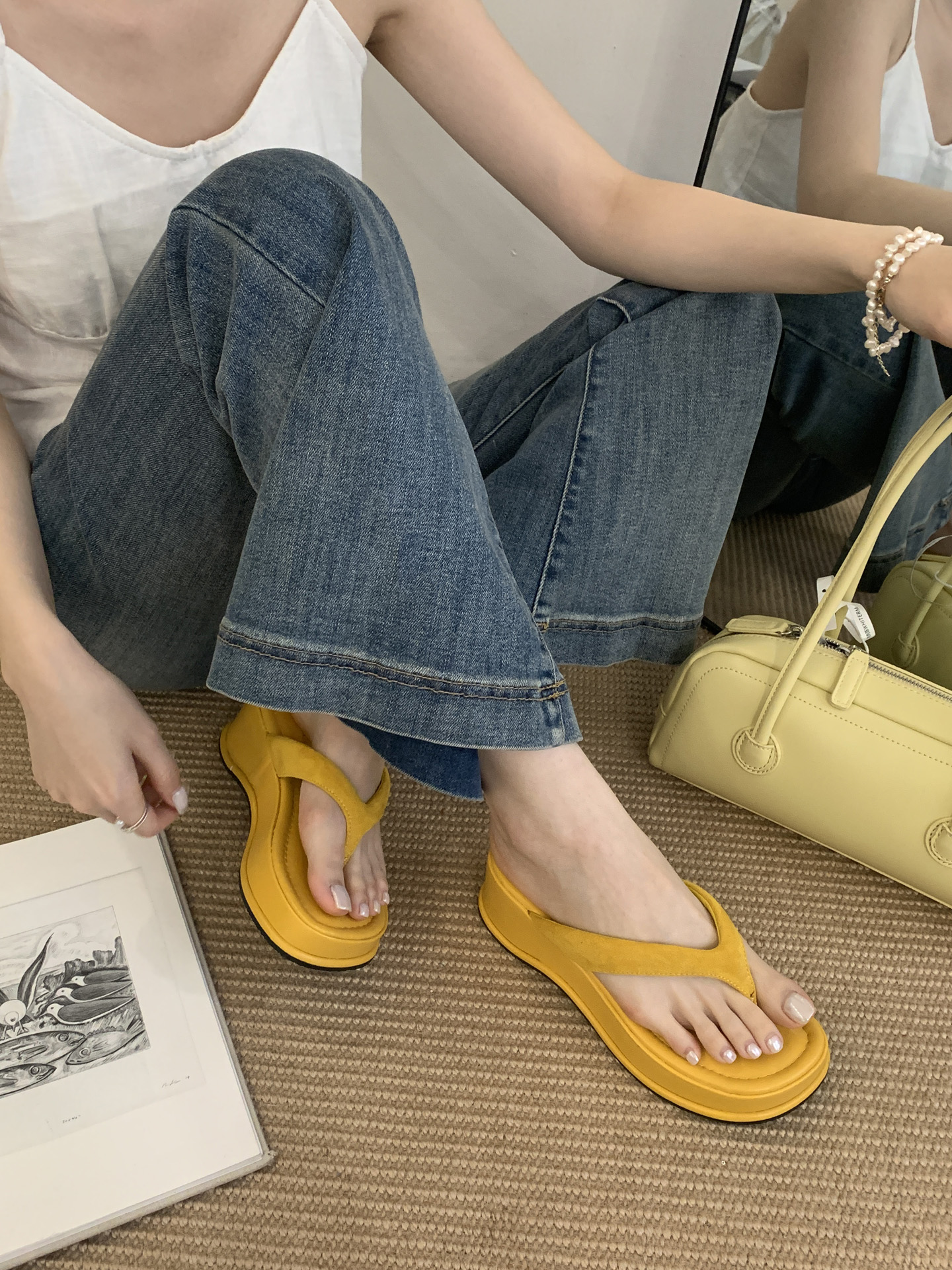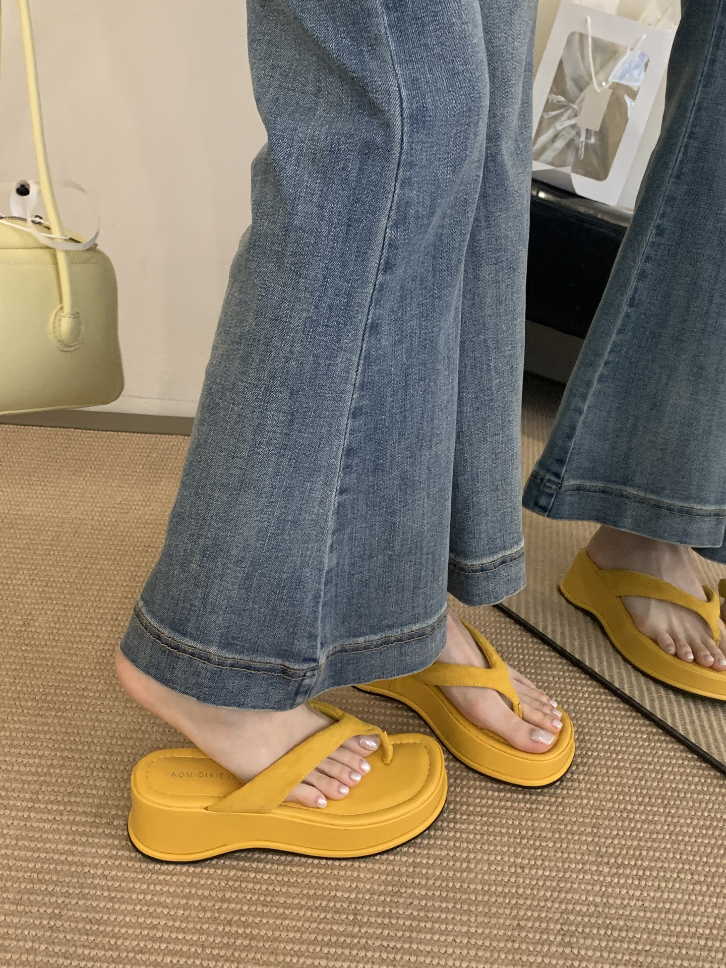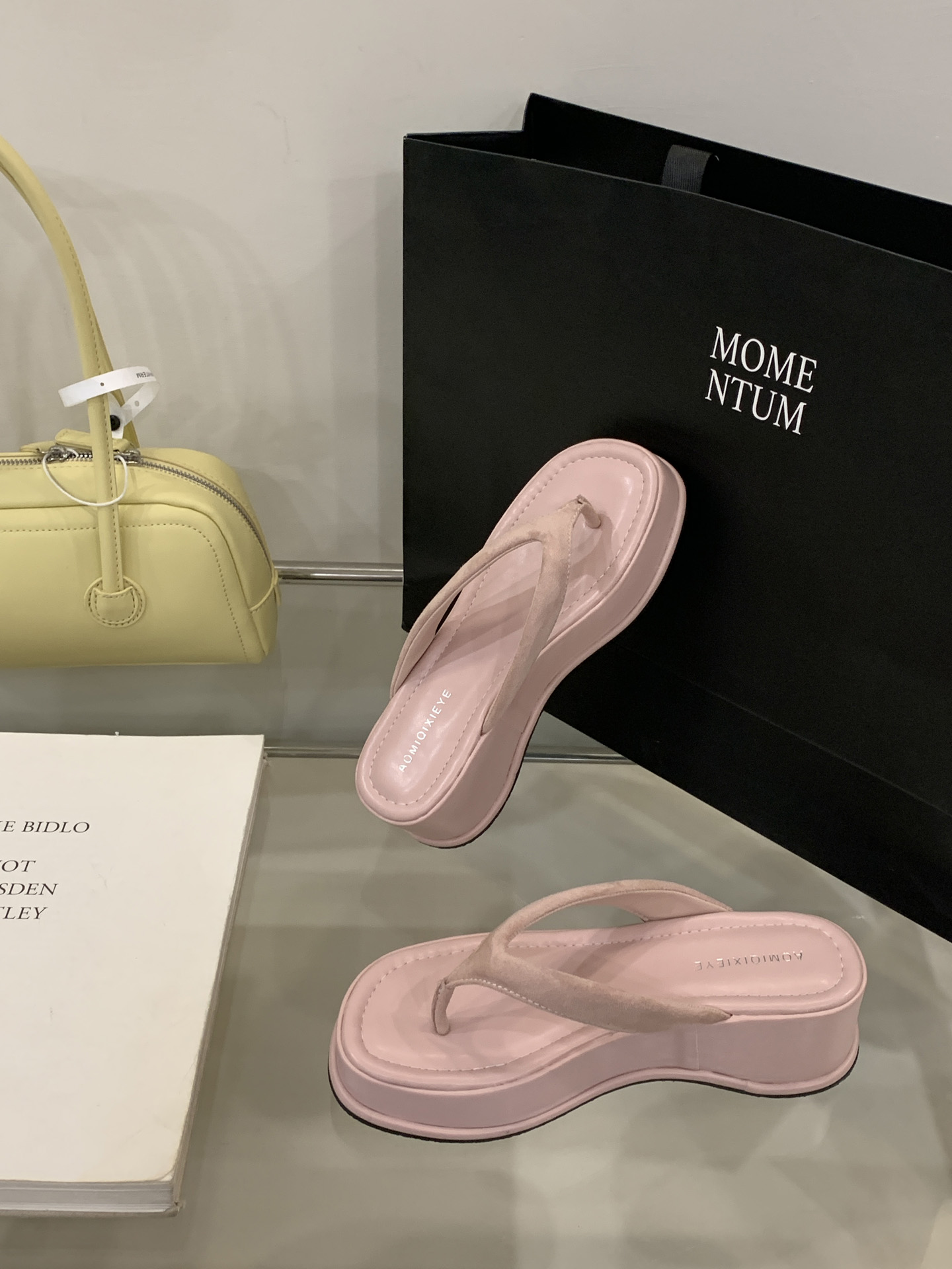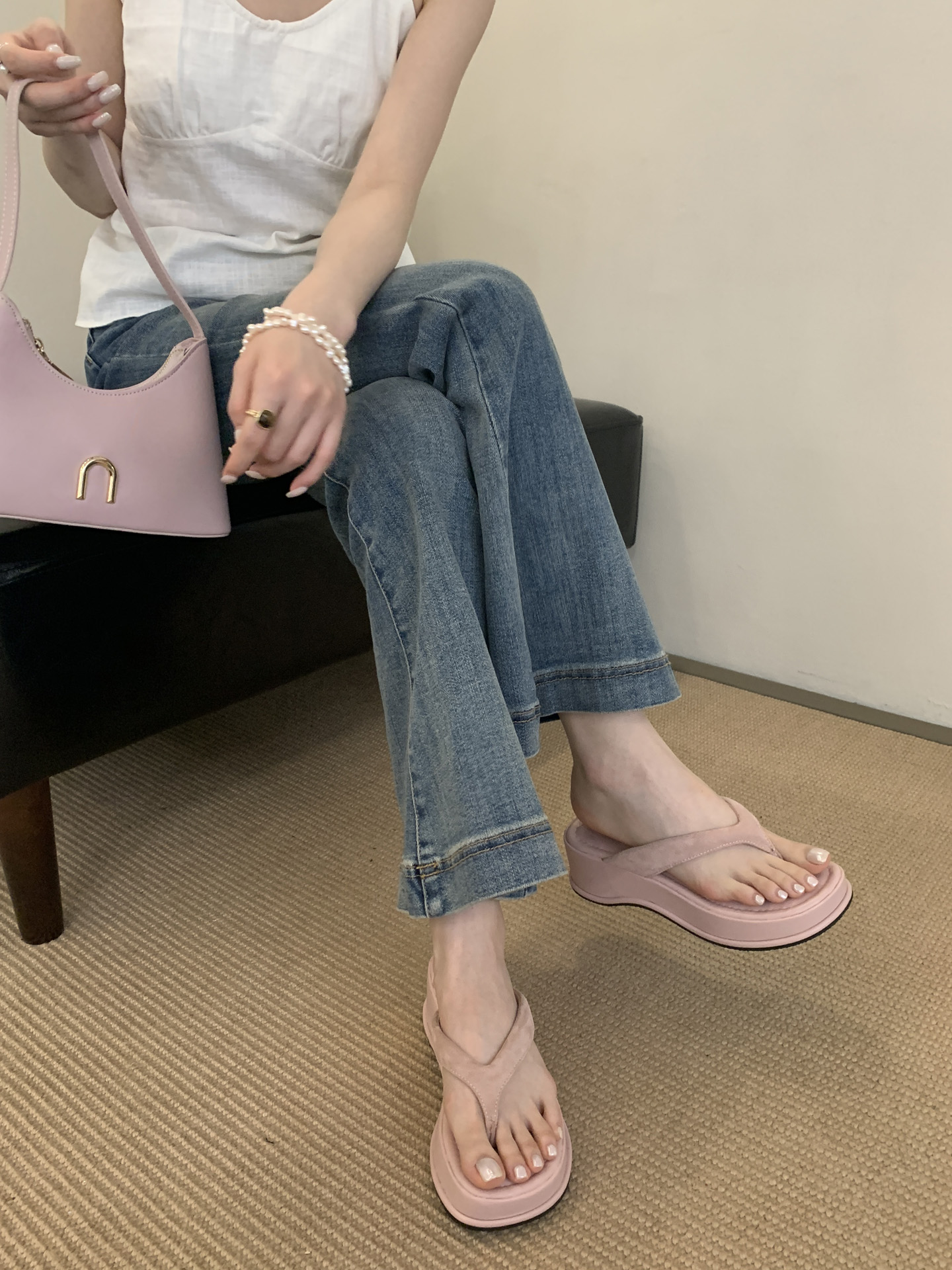아름다운 웨지 힐 플립 플롭 2025 여름 아우터웨어 새로운 요정 스타일 두꺼운 밑창 하이힐 샌들스토어 가기