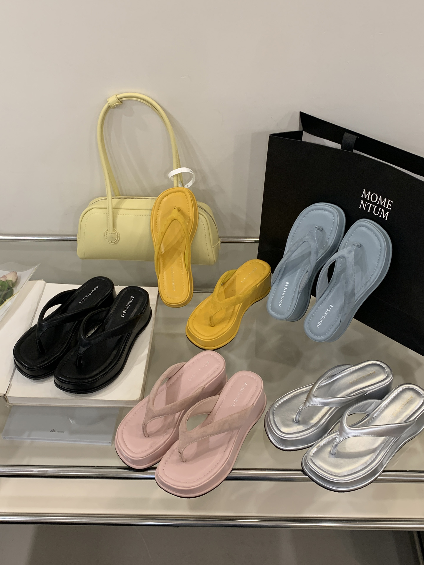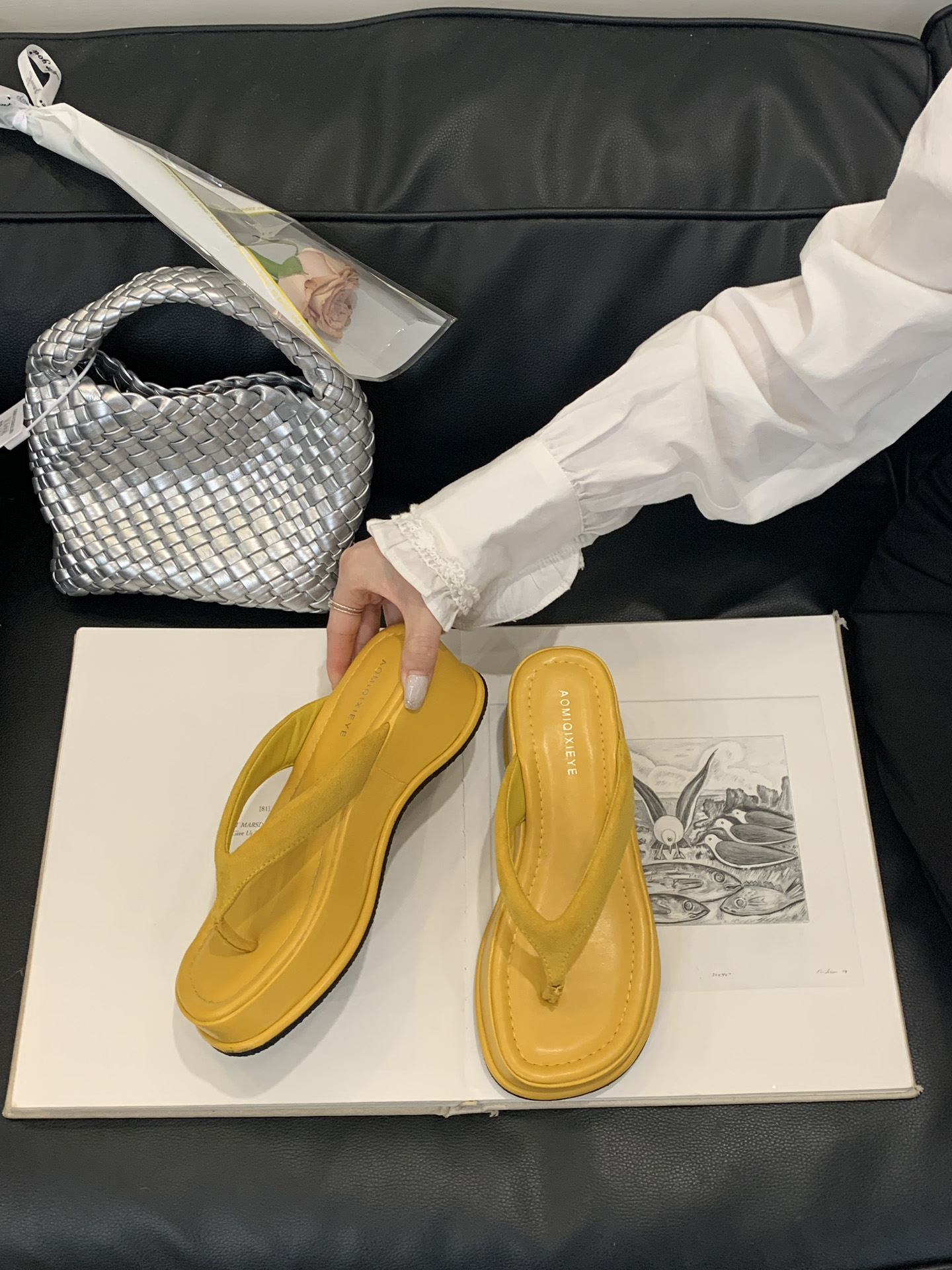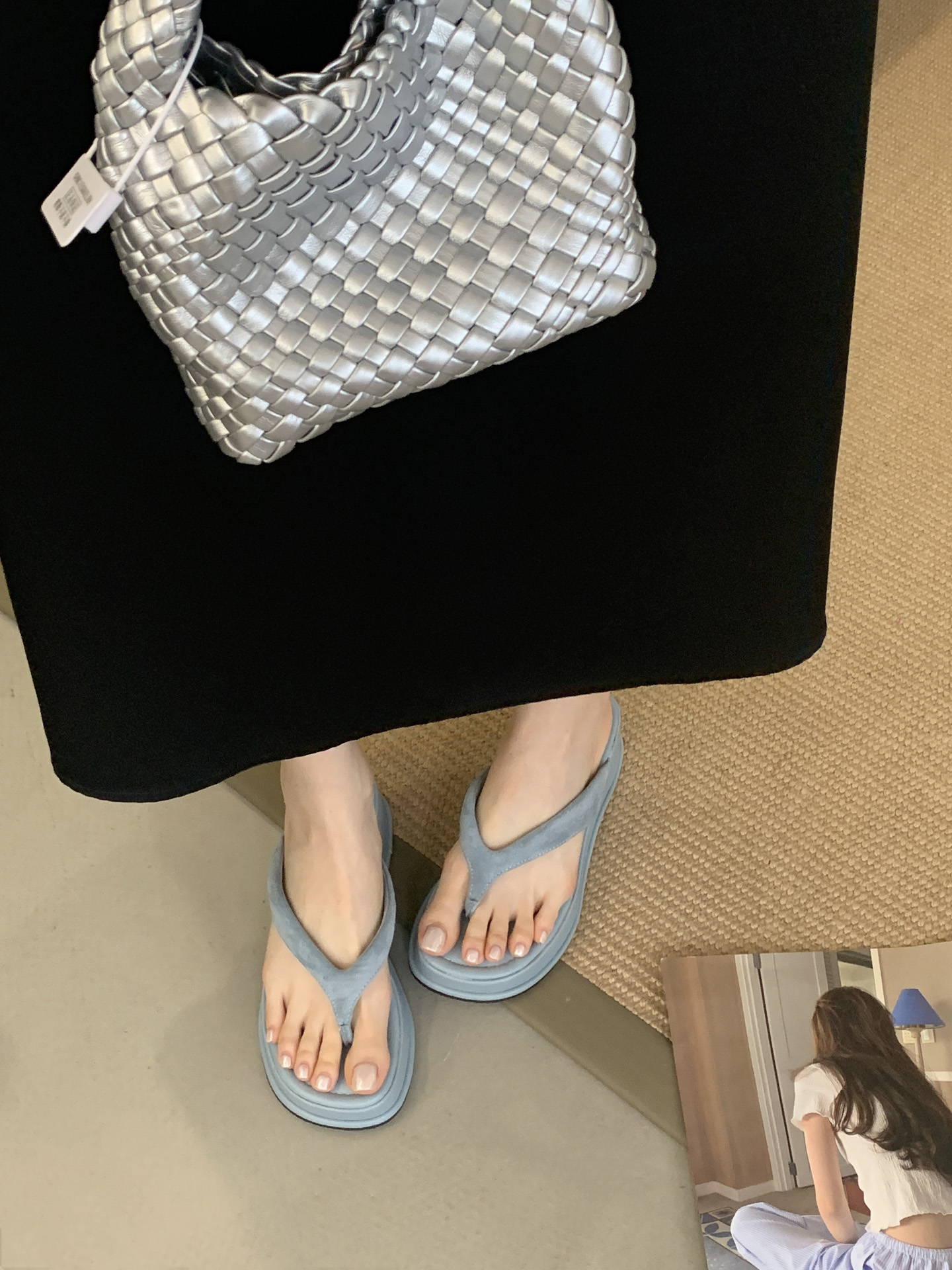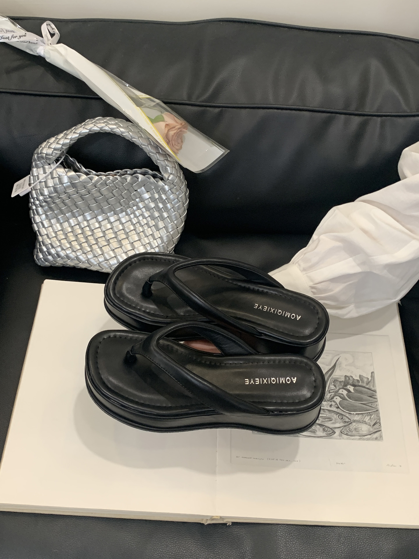 아름다운 웨지 힐 플립 플롭 2025 여름 아우터웨어 새로운 요정 스타일 두꺼운 밑창 하이힐 샌들스토어 가기
