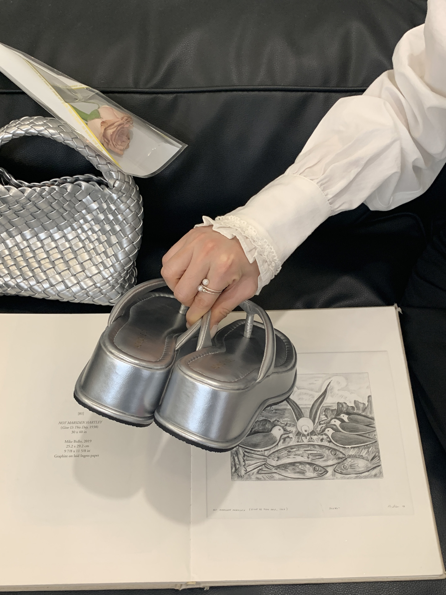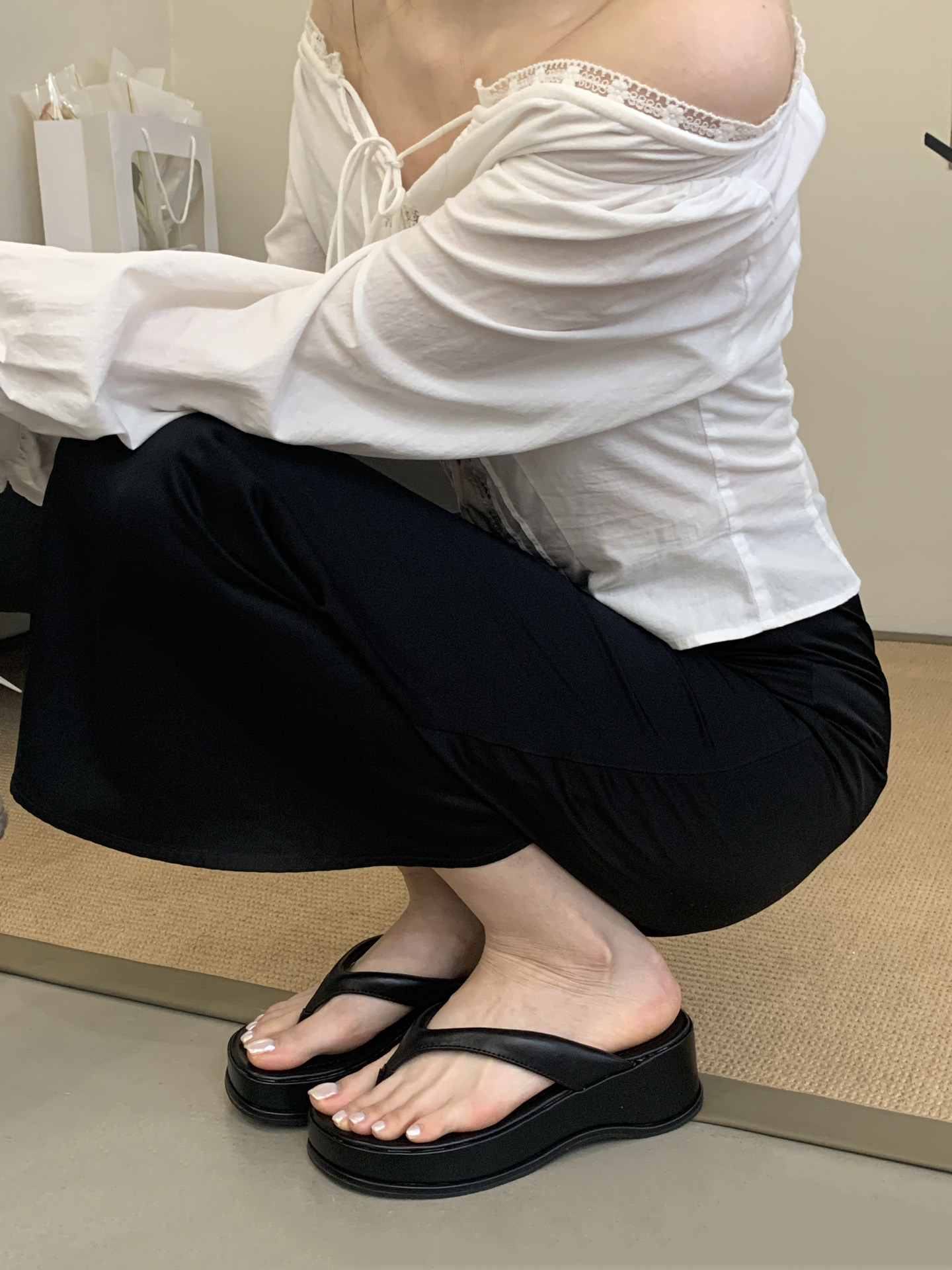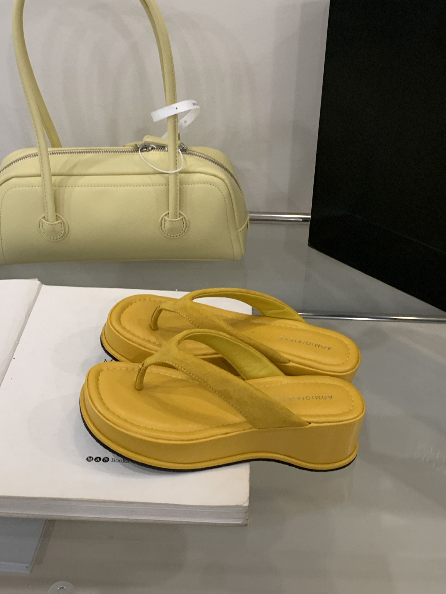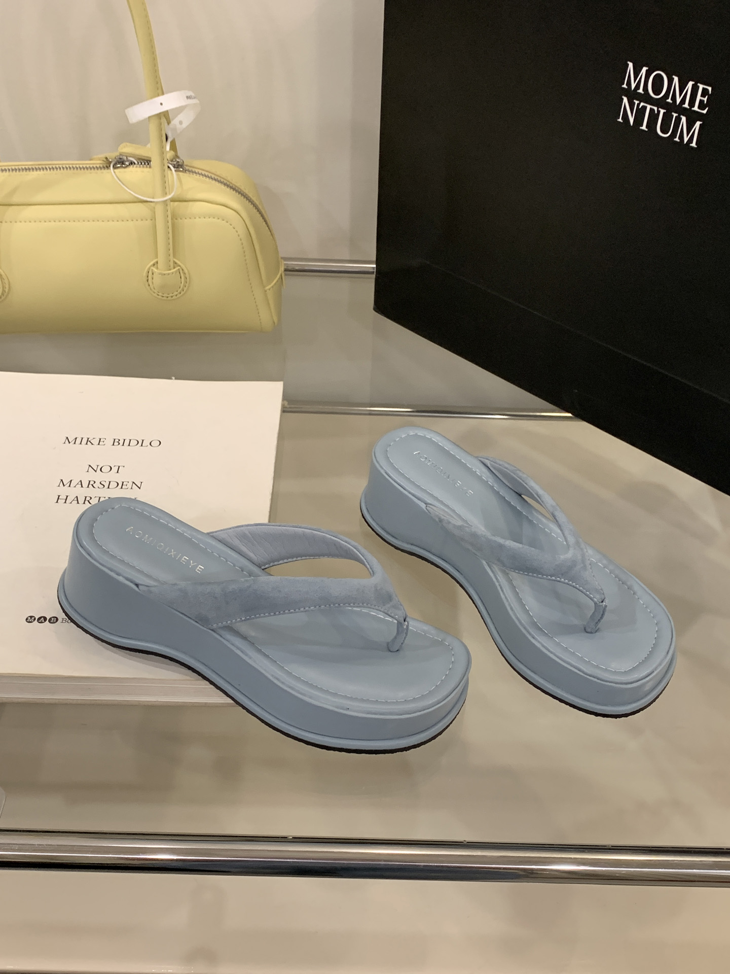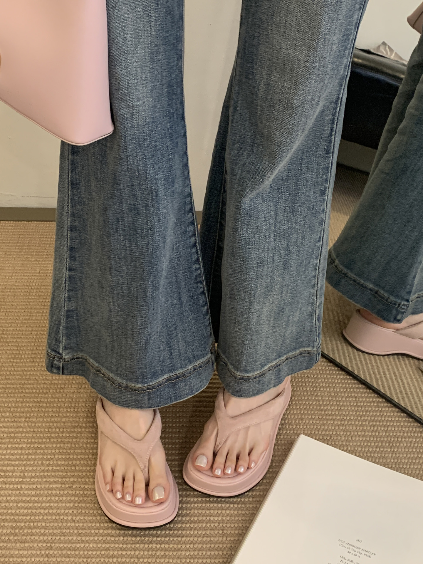 아름다운 웨지 힐 플립 플롭 2025 여름 아우터웨어 새로운 요정 스타일 두꺼운 밑창 하이힐 샌들스토어 가기