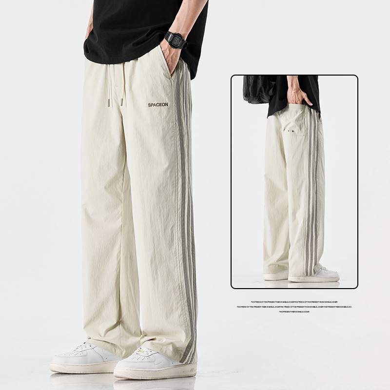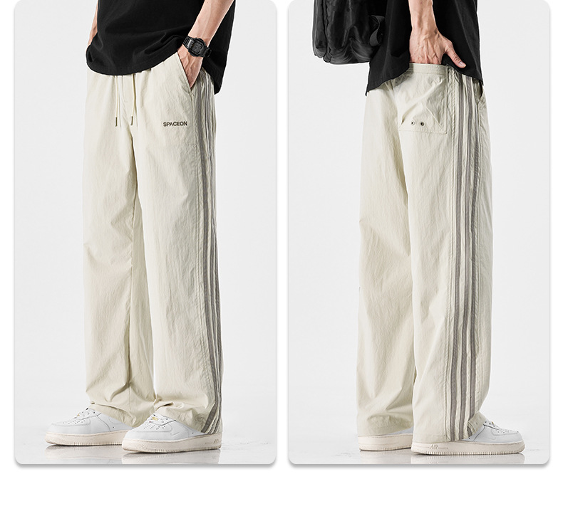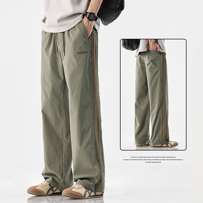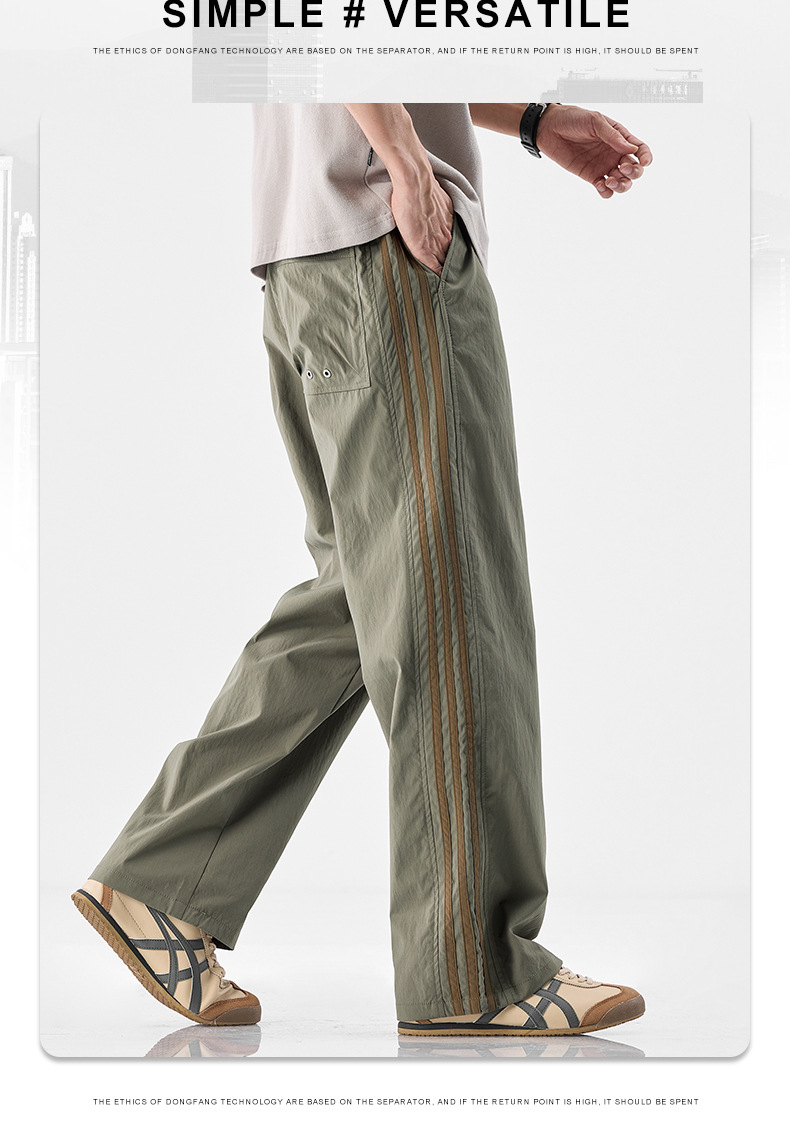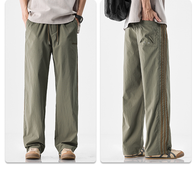 소년을위한 여름 얇은 스포츠 바지 2025 봄, 여름 새로운 스트레이트 레그 충전 바지 느슨한 줄무늬 작업복 캐주얼 바지