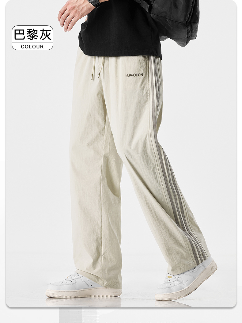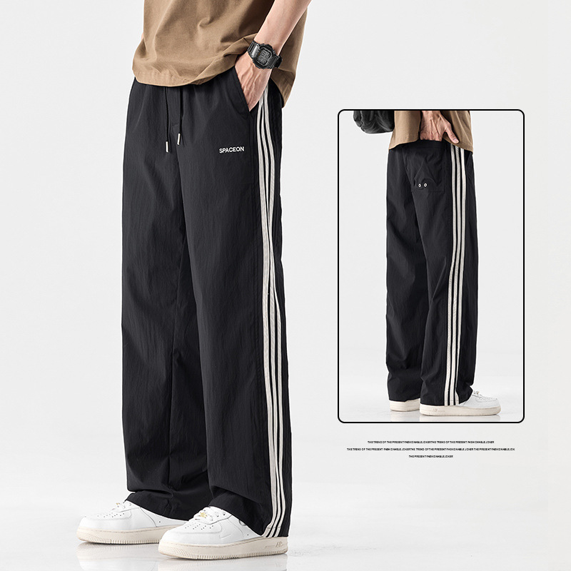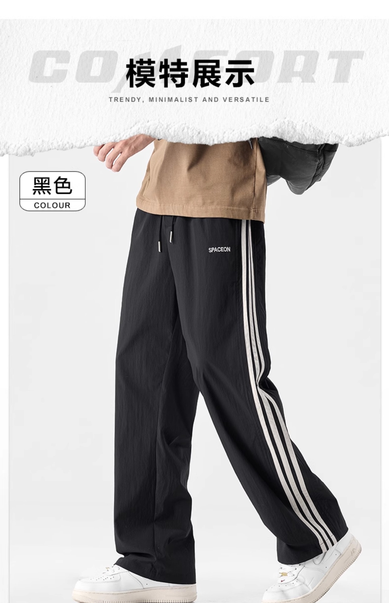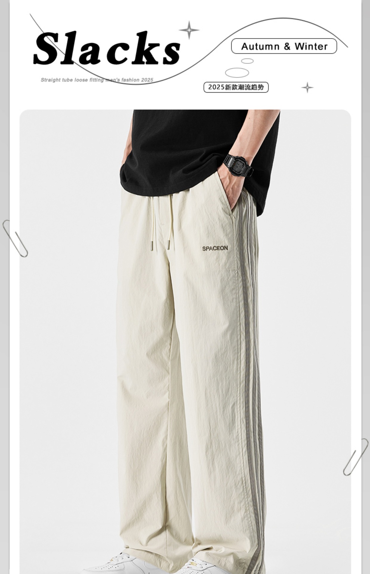 소년을위한 여름 얇은 스포츠 바지 2025 봄, 여름 새로운 스트레이트 레그 충전 바지 느슨한 줄무늬 작업복 캐주얼 바지