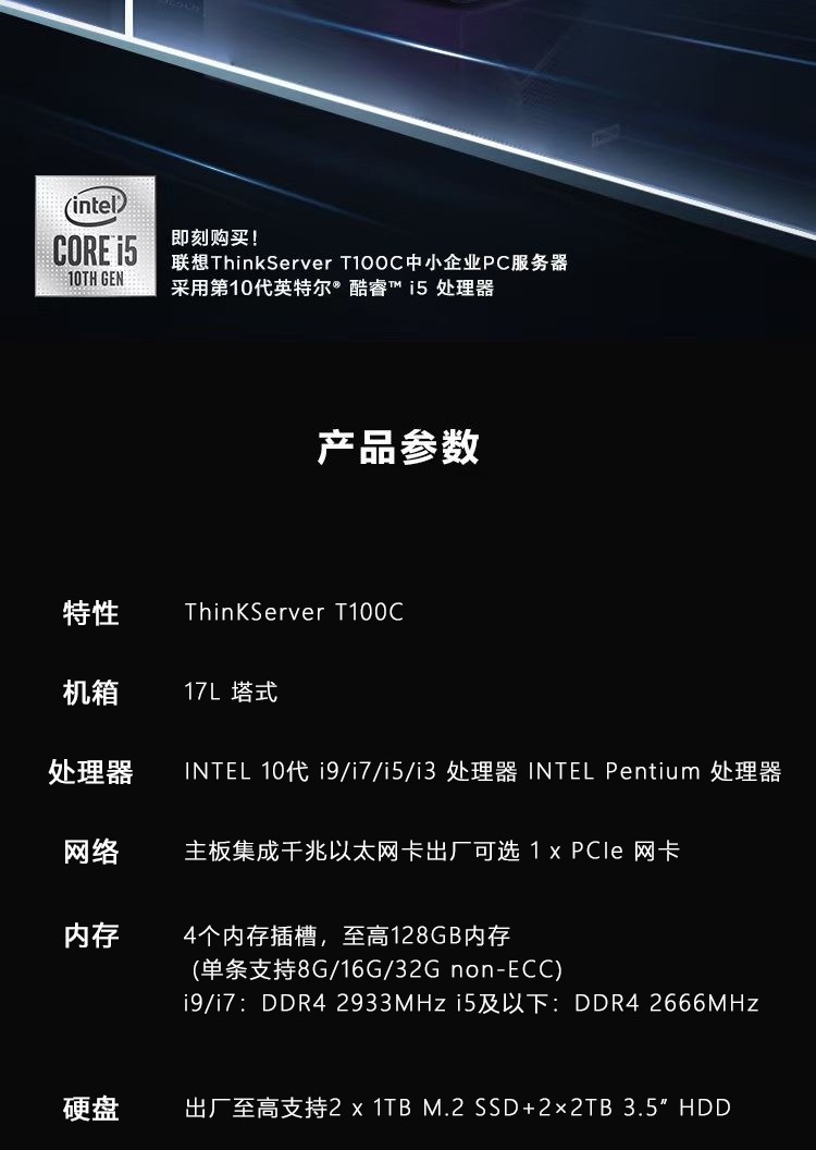 Lenovo T100c 타워 서버 호스트 워크스테이션 디자이너 고성능 데스크탑 컴퓨터 ThinkServer스토어 가기