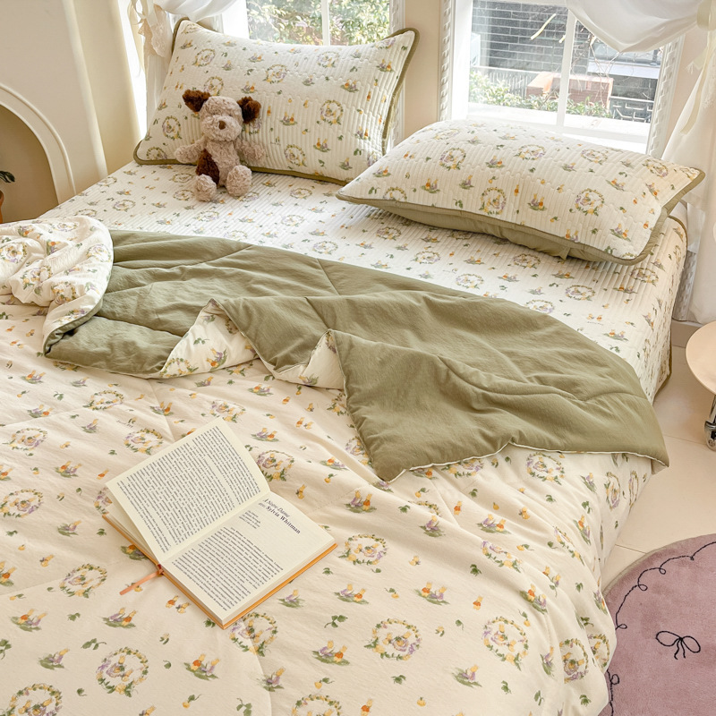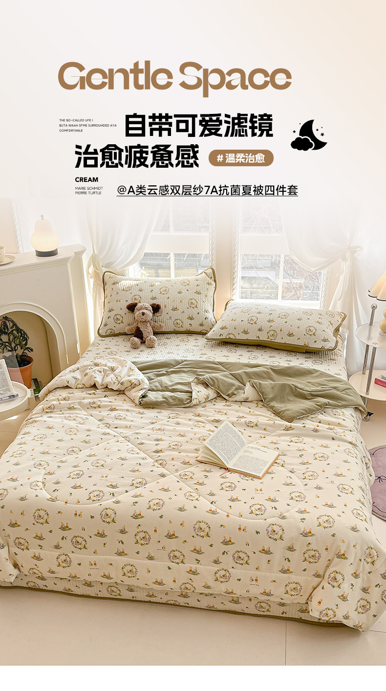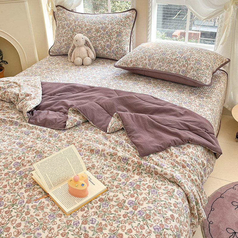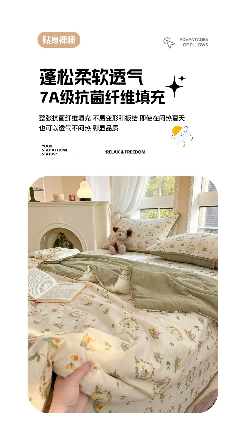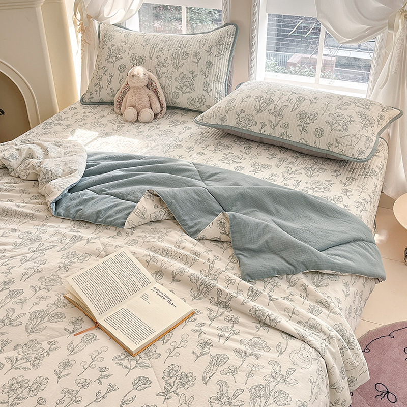 국경 간 A급 클라우드 센스 더블 레이어 원사 항균 여름 이불 작은 신선한 꽃무늬 에어컨 이불 이불 코어 어린이 기숙사 이불