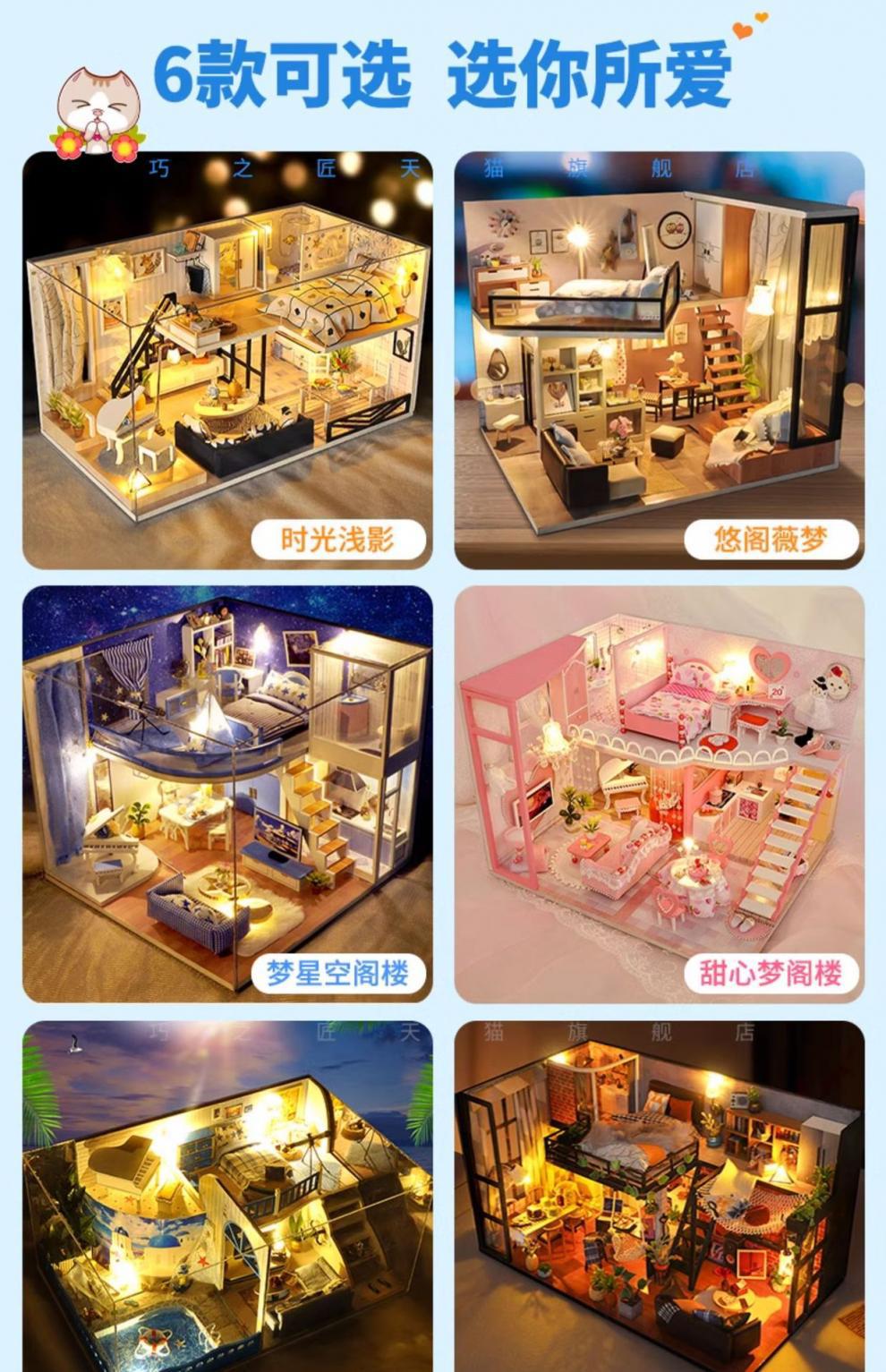Diy 수제 캐빈 빌라 미니 작은 집 조립 모델 슈퍼 세계 빌딩 블록 장난감 여성을위한 생일 선물