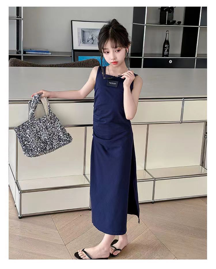 여자 2025 여름 새로운 민소매 드레스 솔리드 컬러 유행 캐주얼 롱 스커트 여자 스트리트 조끼 스커트 유행스토어 가기
