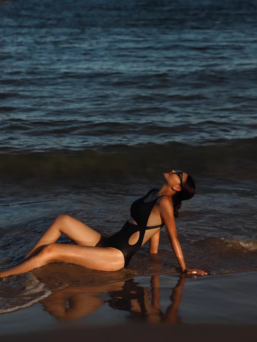 여성용 크로스보더 수영복 2025 새로운 블랙 원피스 비키니 섹시 할로우 백리스 슬리밍 순수 욕망 온천 휴가