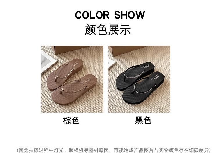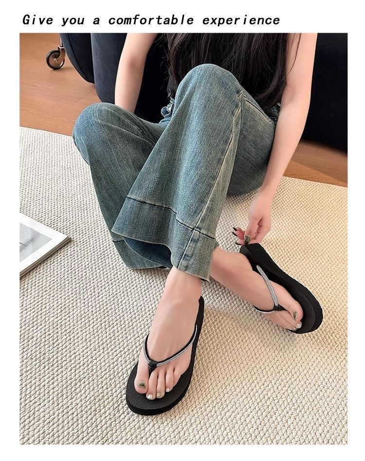 Jinbukang 여성용 새 비치 슈즈 슬리퍼 여름 패션 아우터웨어 해변 두꺼운 밑창 웨지 힐 플립 플롭 라인스톤 헤링본