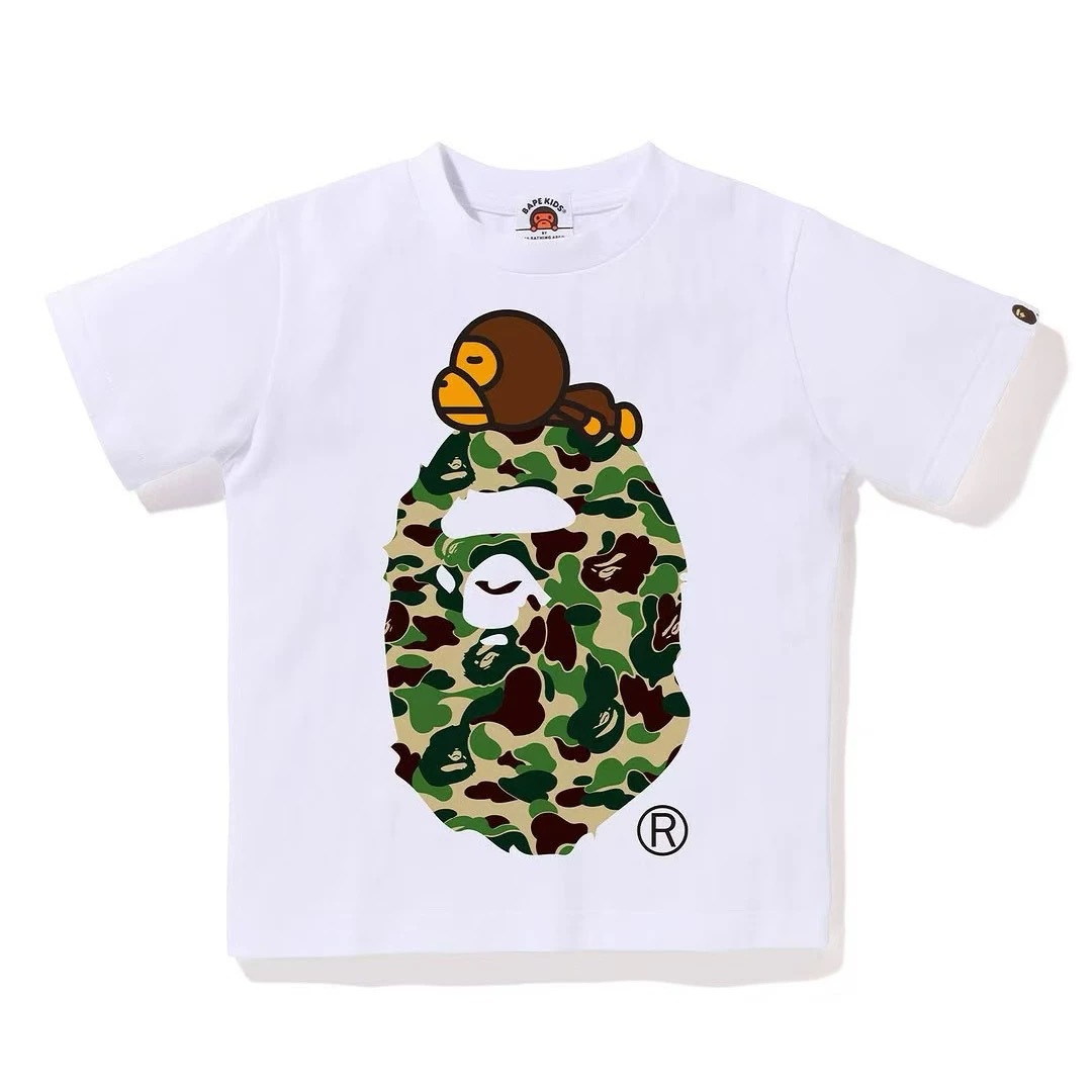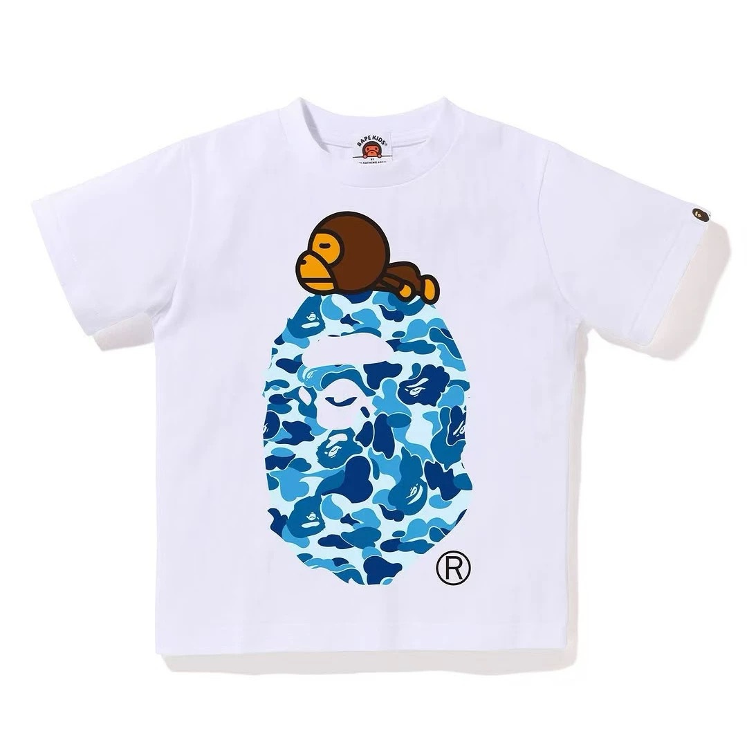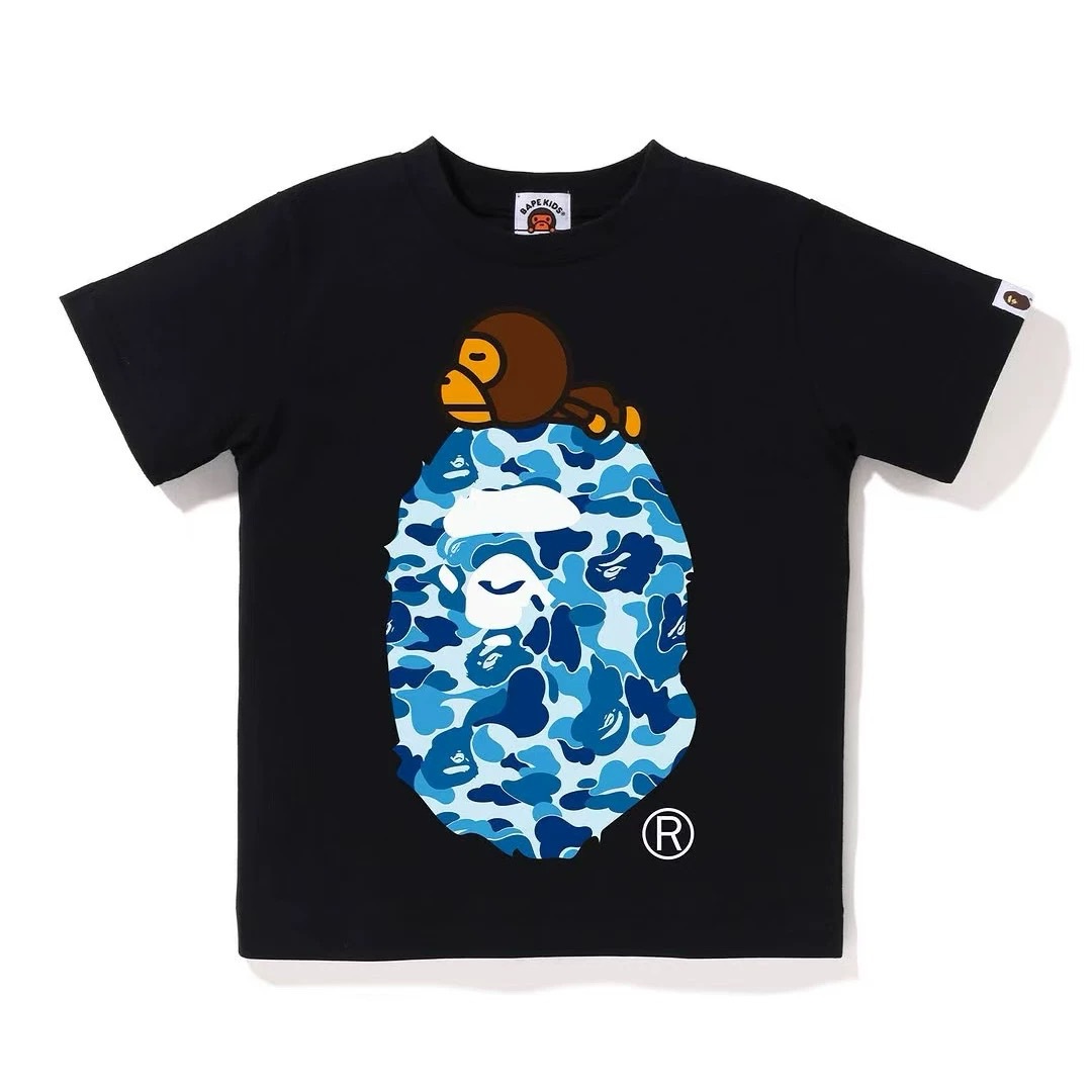 국경 간 여름 BAPE 위장 큰 원숭이 어린이 여름 옷 남성과 여성 중간 어린이 면화 반팔 티셔츠 아기 원숭이 머리