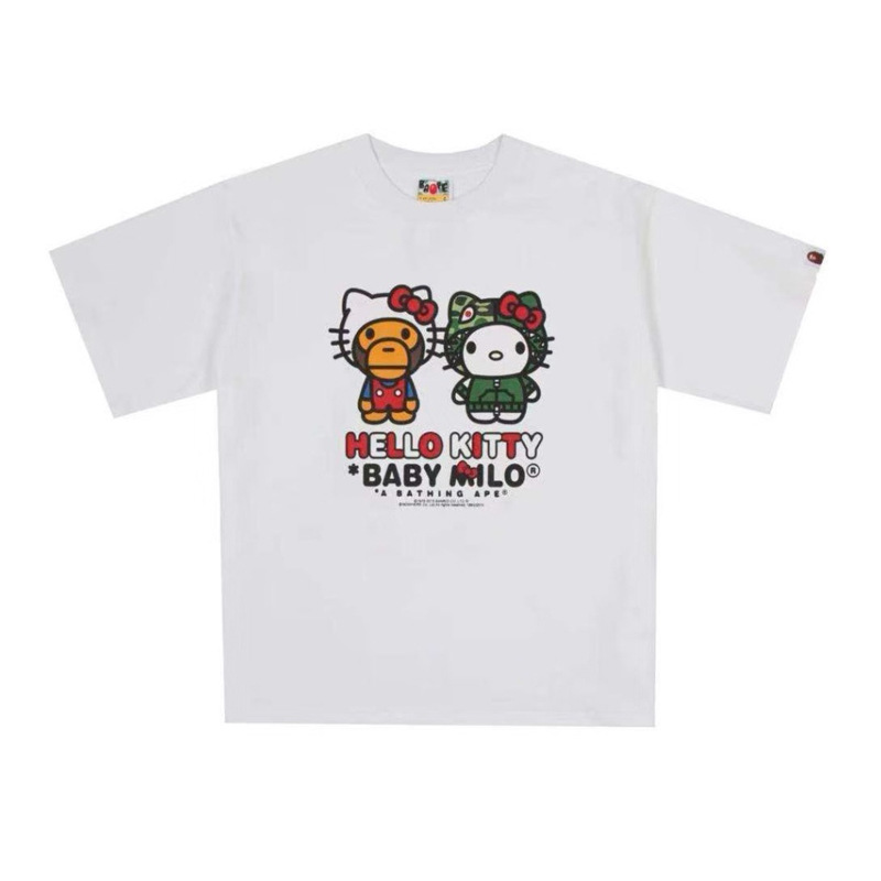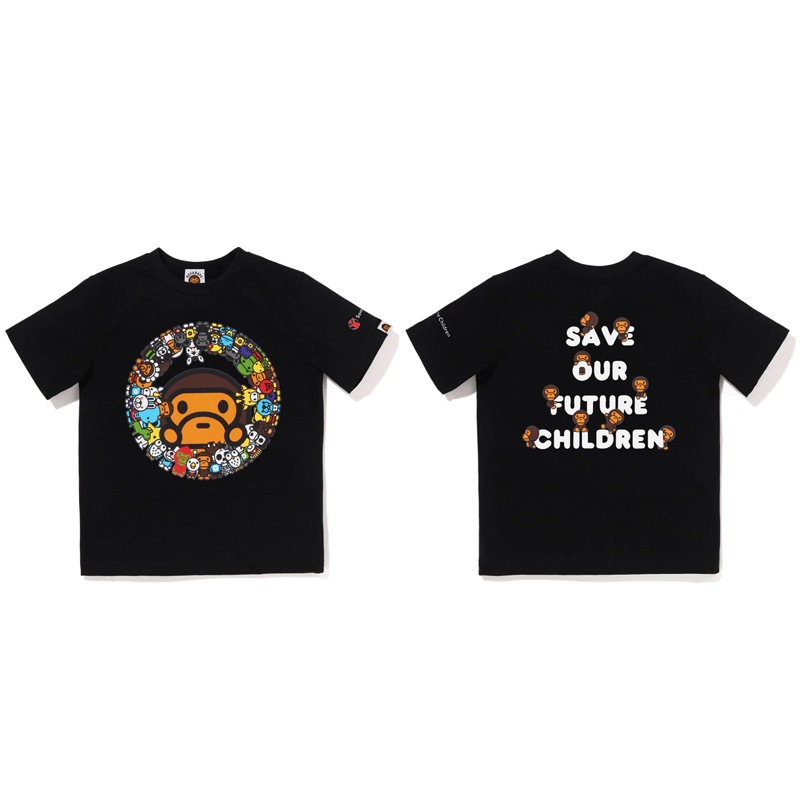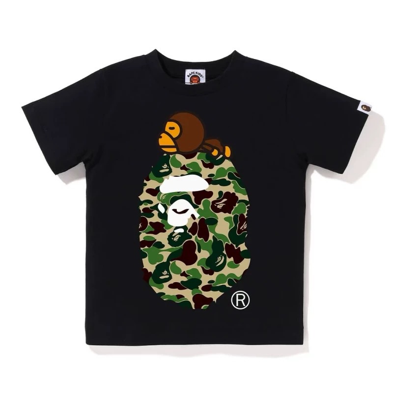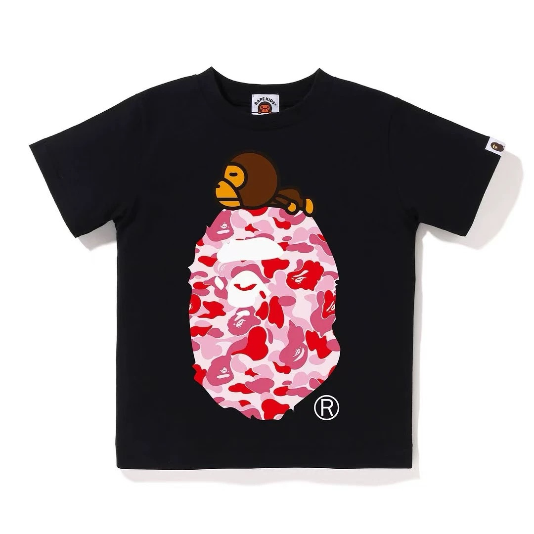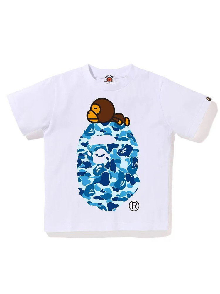 국경 간 여름 BAPE 위장 큰 원숭이 어린이 여름 옷 남성과 여성 중간 어린이 면화 반팔 티셔츠 아기 원숭이 머리